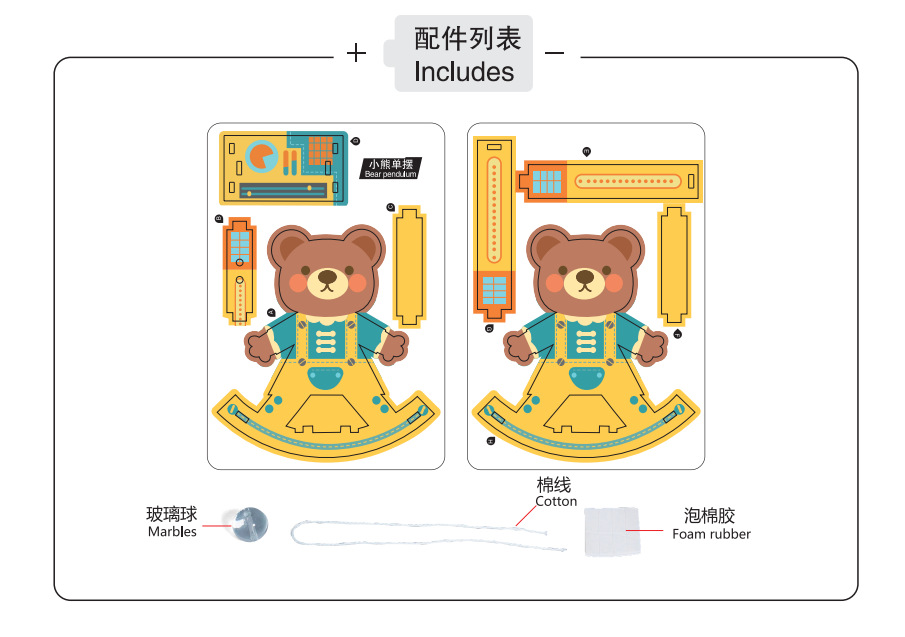 3~12세 어린이를 위한 과학 실험 재료 패키지 STEM 과학 및 교육 최첨단 기술 소규모 생산 DIY 곰 진자스토어 가기