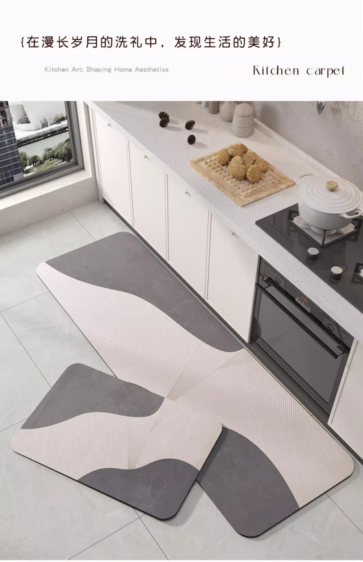 간단한 주방 이원자 진흙 매트 물 흡수, 오일 흡수, 더러운 저항, 사용하기 쉬운 긴 카펫 가정용 미끄럼 방지 매트스토어 가기