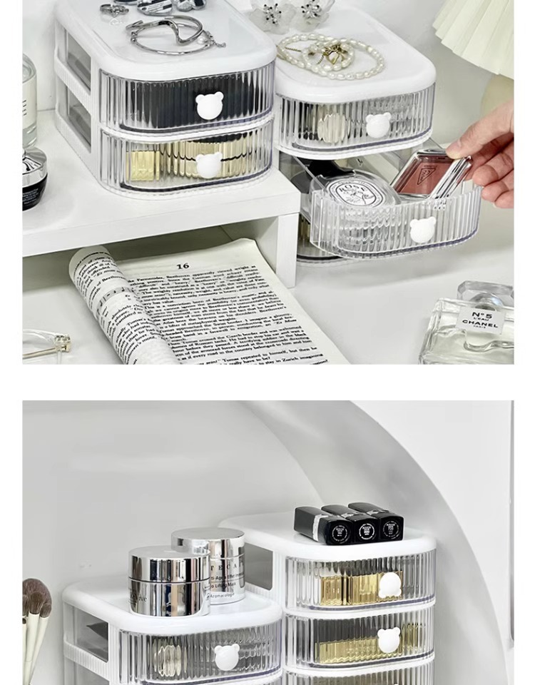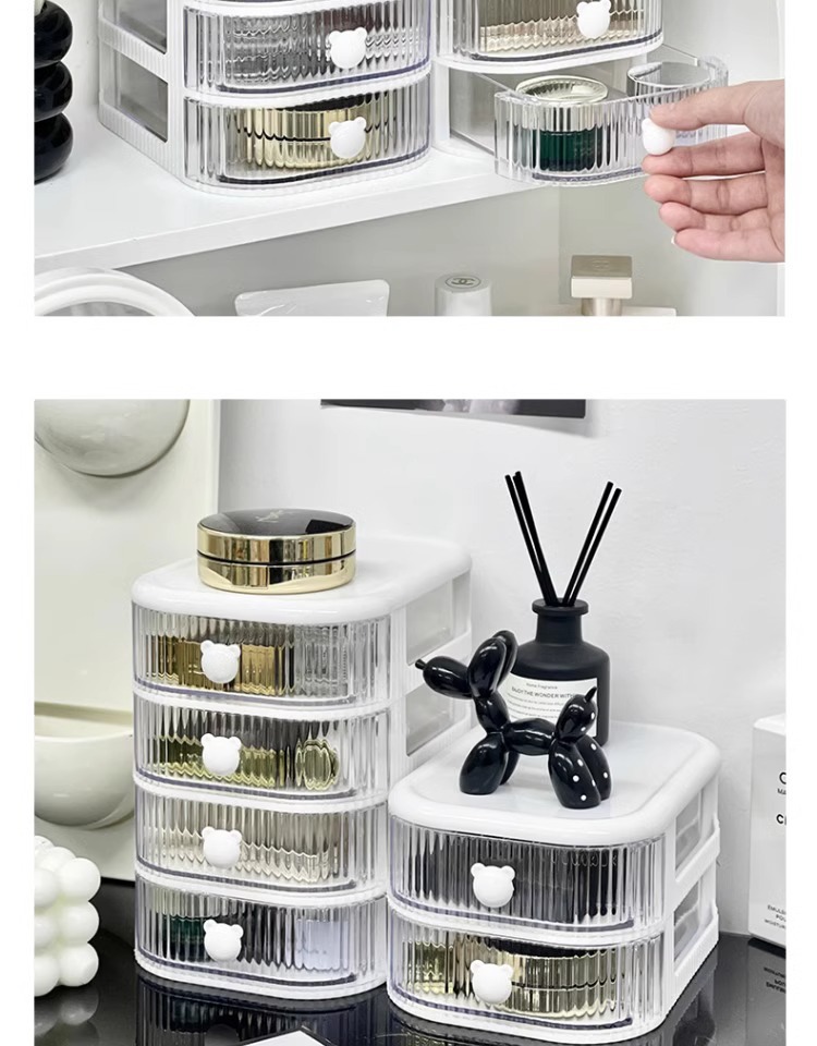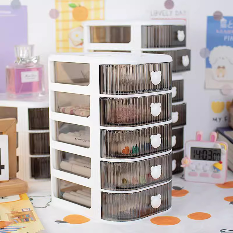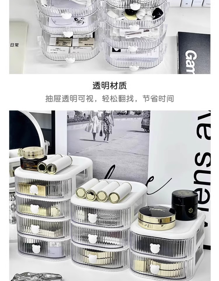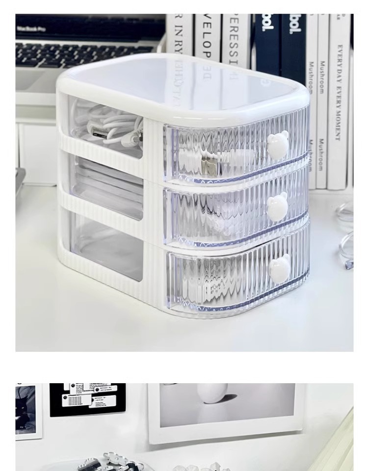 데스크탑 다층 서랍형 수납함 투명 방진 책상 문구류 정리함 대용량 책상 정리함