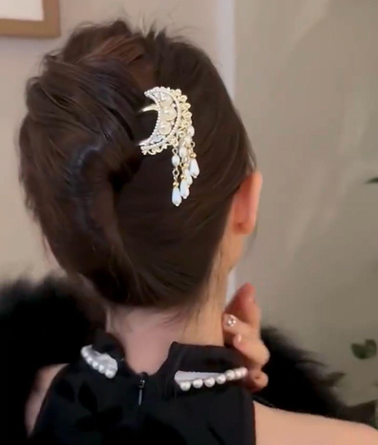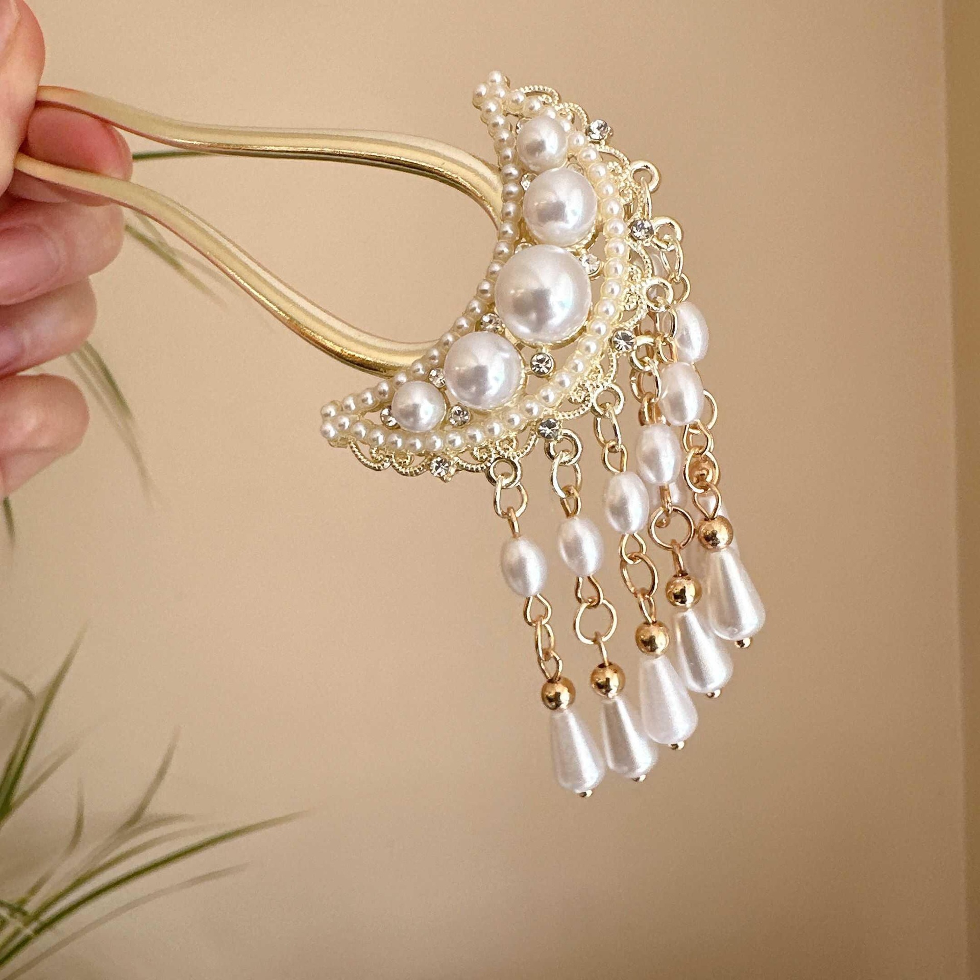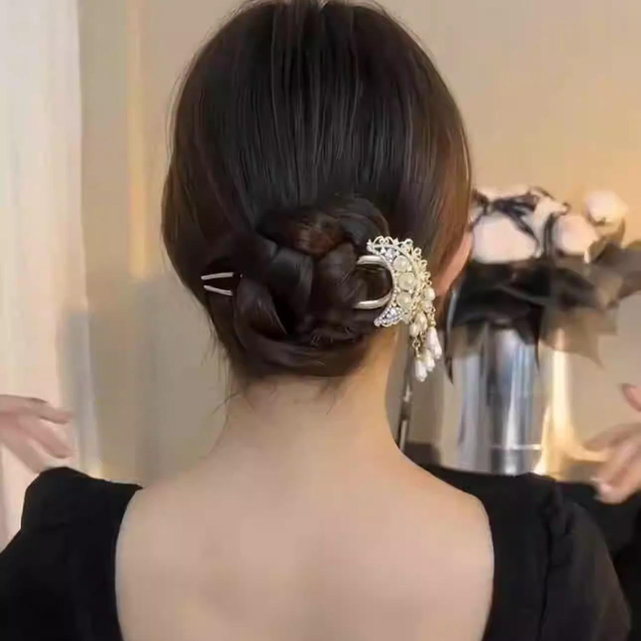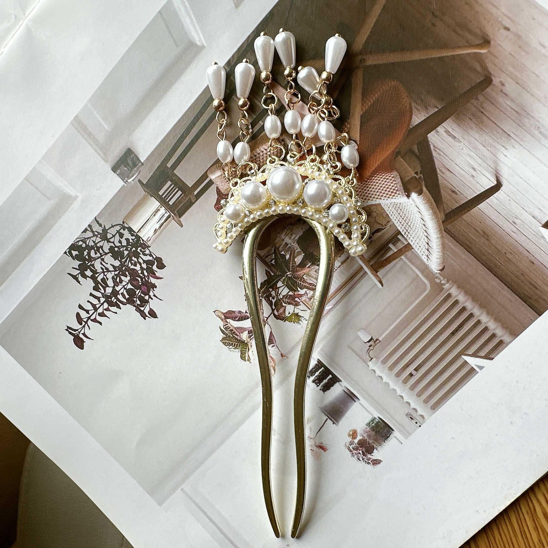진주 초승달 술 U자형 헤어핀 여성 청삼 한후 헤드웨어 골동품 신형 중국식 금속 디스크 헤어 헤어핀 헤드웨어스토어 가기