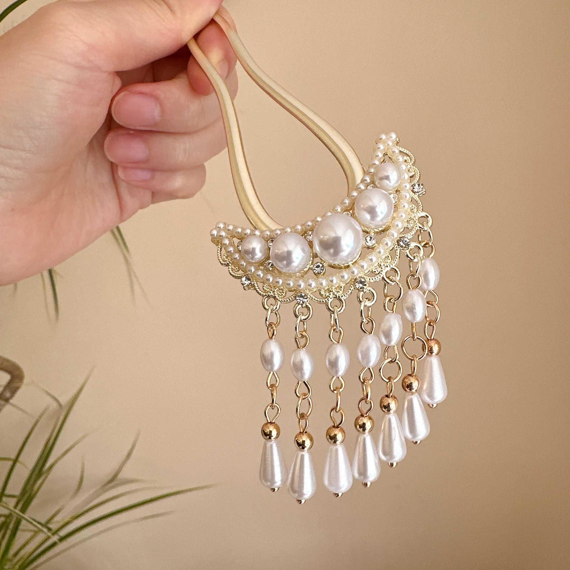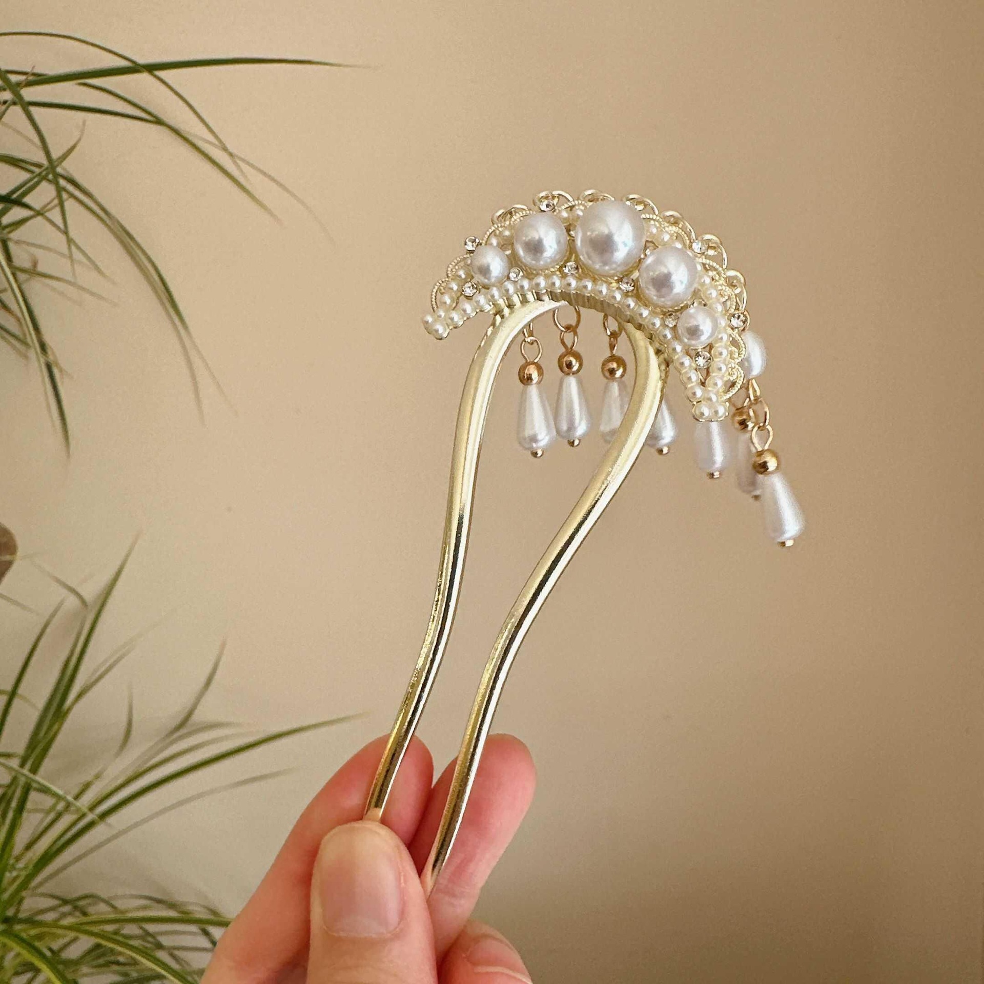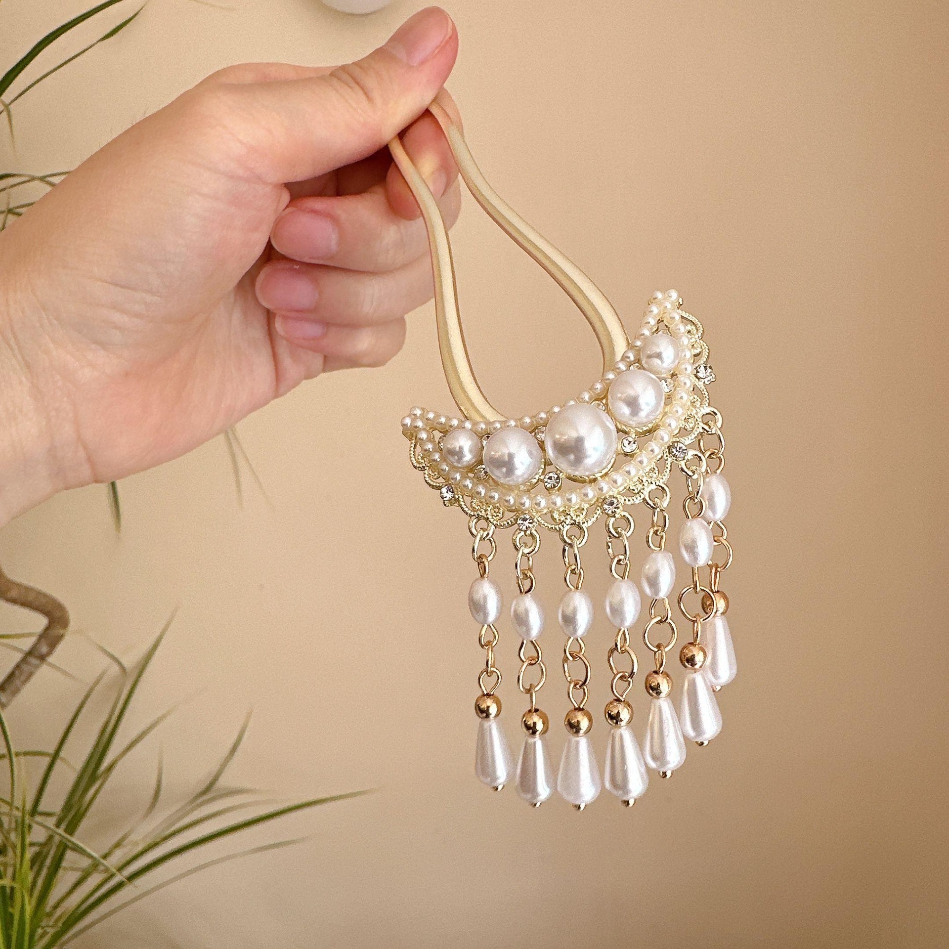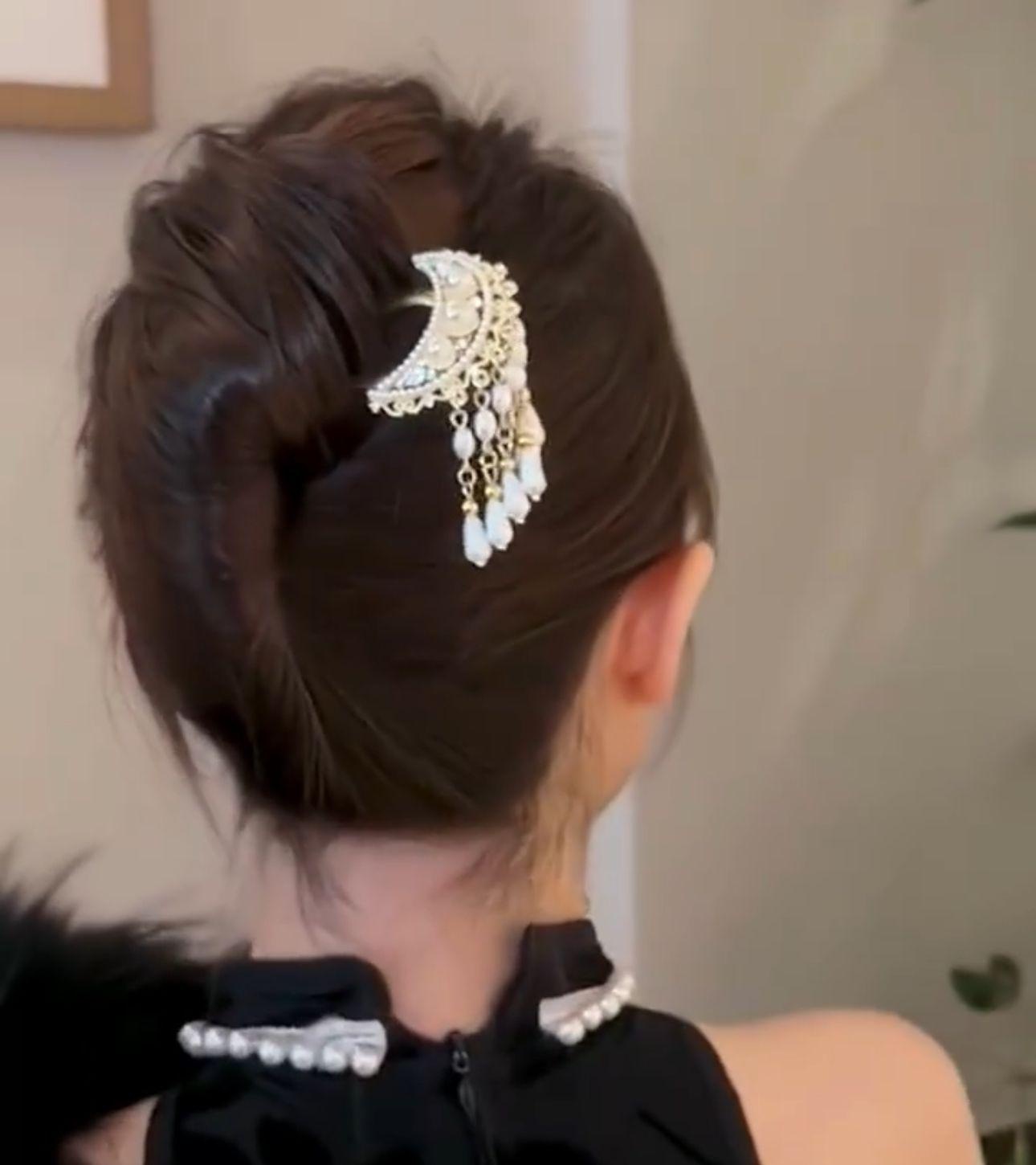 진주 초승달 술 U자형 헤어핀 여성 청삼 한후 헤드웨어 골동품 신형 중국식 금속 디스크 헤어 헤어핀 헤드웨어스토어 가기