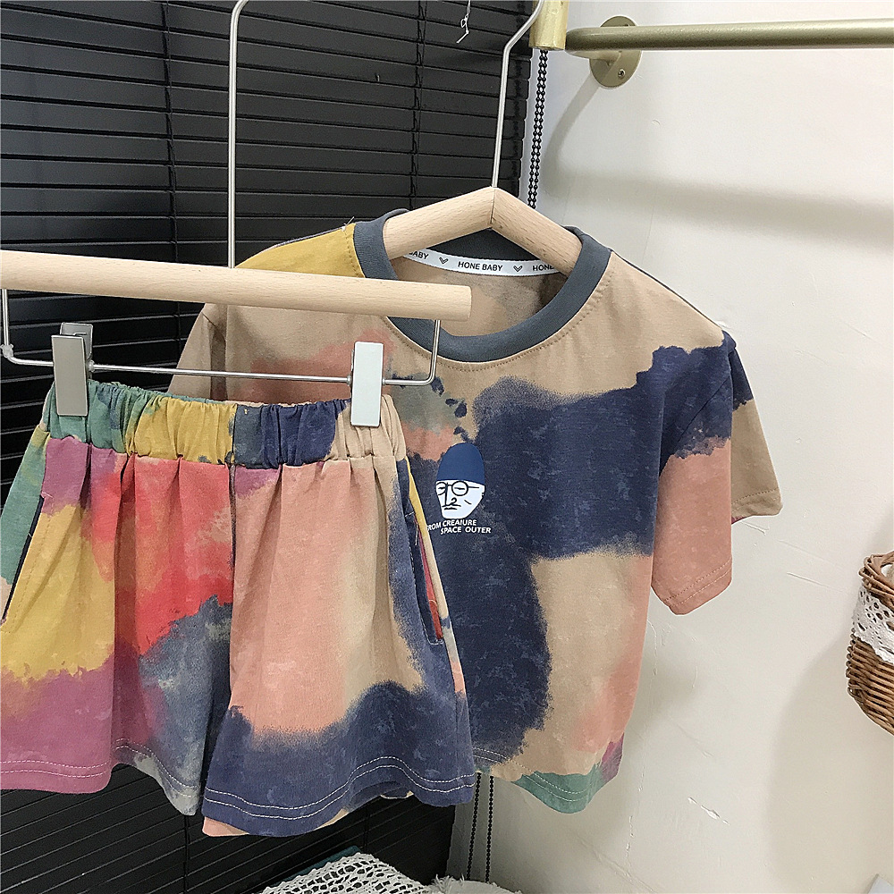 어린이 반팔 티셔츠 여름 자매와 형제복 소년 루즈탑 반바지 세트 여자 아기의 중간 길이 티셔츠 스커트