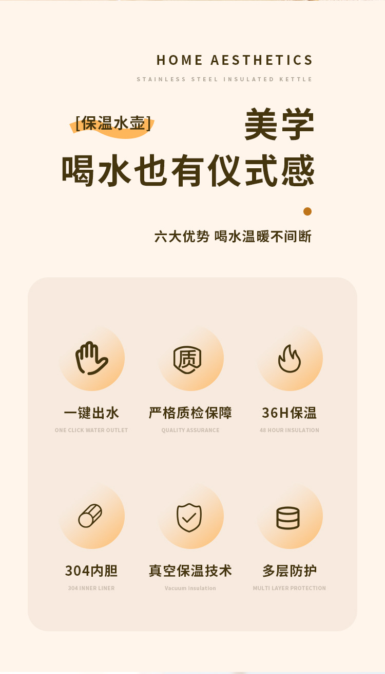 真空款:(壶身为双层不锈钢,并抽真空)长效保温24小时,持久保冷。
