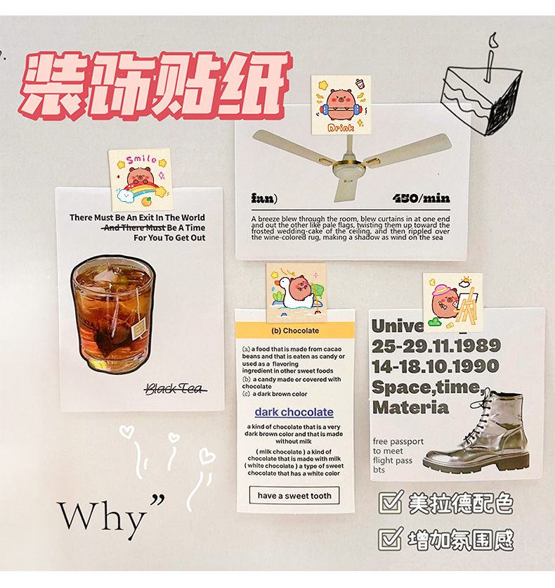 카피 발라 롤 스티커 접착 테이프 어린이 장난감 상 스티커 휴대 전화 장식 패턴 만화 밀봉 스티커