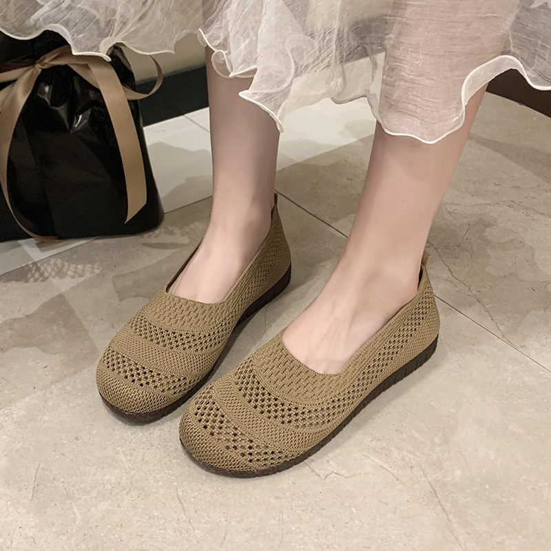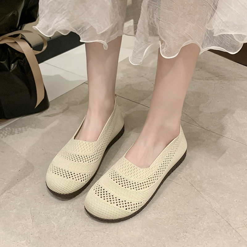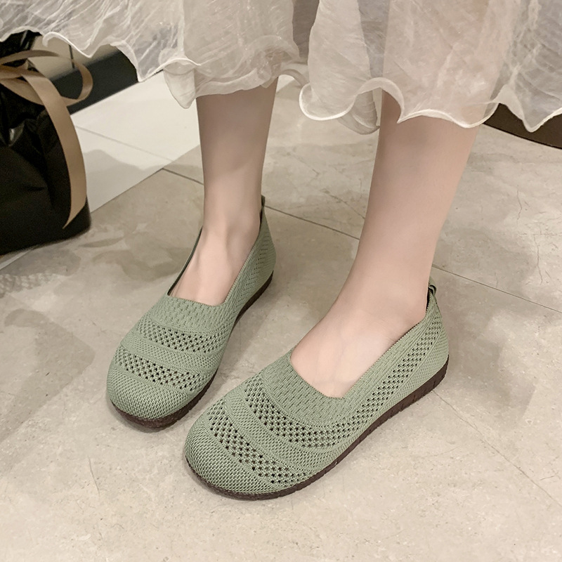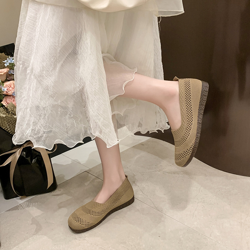 부드러운 밑창 어부 신발 여성 여름 새 레트로 올매치 할로우 아웃 얕은 신발 플라이 니트 슬립 온 할머니 신발스토어 가기