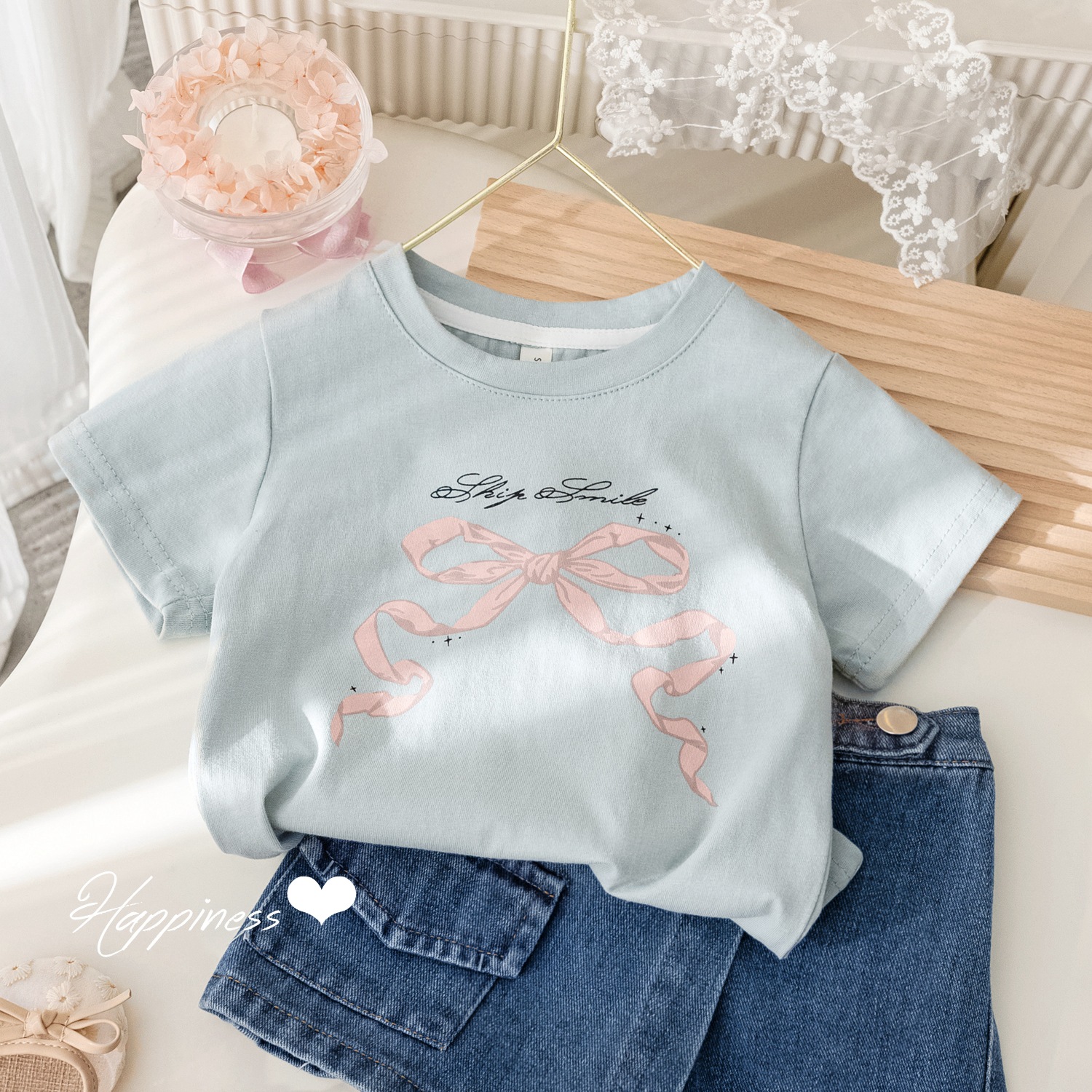 소녀 인터넷 축하 활 인쇄 반팔 티셔츠 한국식 외래식 Bottoming T 자형 여성 아기 여름 새 반소매 탑스토어 가기