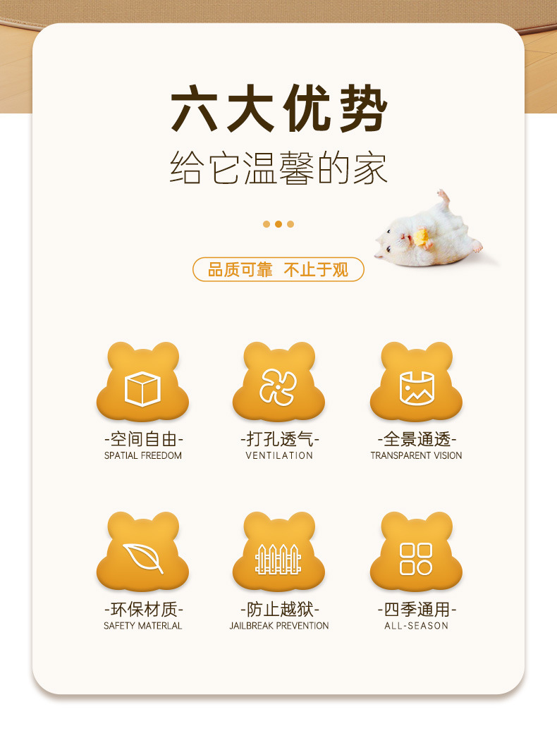 햄스터 케이지, 햄스터 사육 상자, 황금곰 운반 상자, PVC 소재, 천공 및 통기성, 고급 빌라, 소형 애완동물스토어 가기