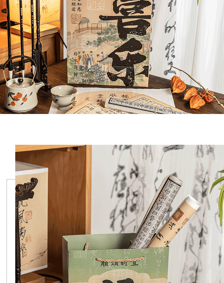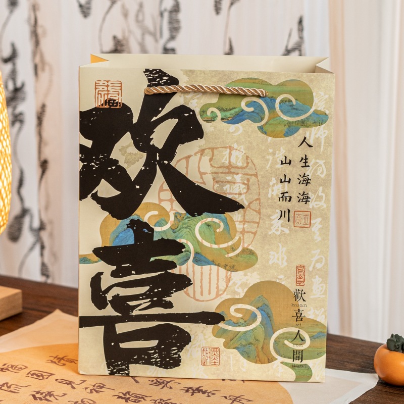 야옹 기쁨 Ruyi 선물 가방 종이 가방 핸드백 서예 골동품 선물 창조적 인 포장 가방 중국 스타일 국가 스타일스토어 가기