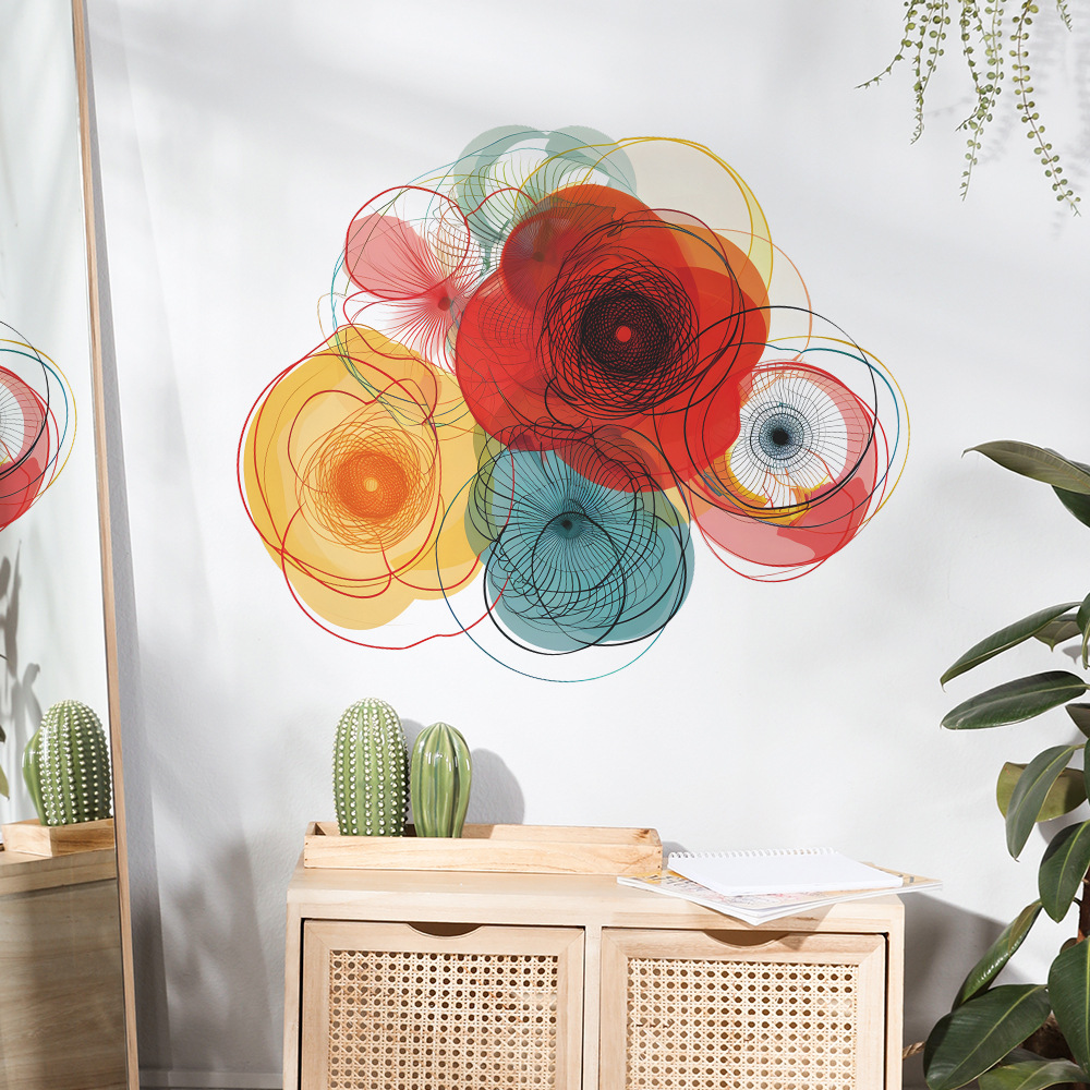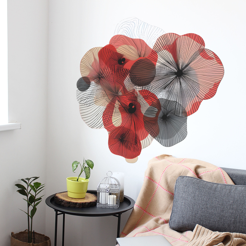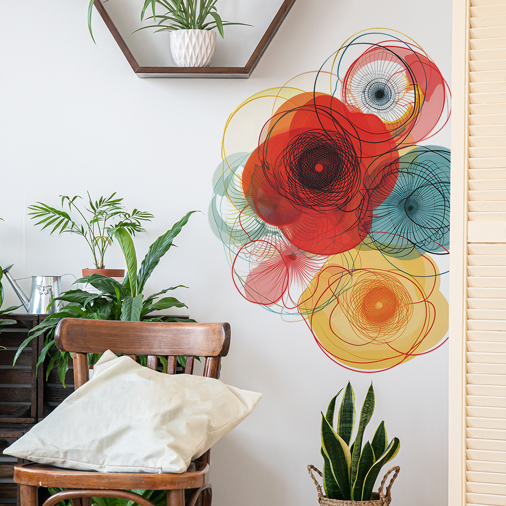 팬 Xi 창조적 인 컬러 블록 라인 꽃 침실 거실 배경 미화 장식 벽 스티커 도매스토어 가기