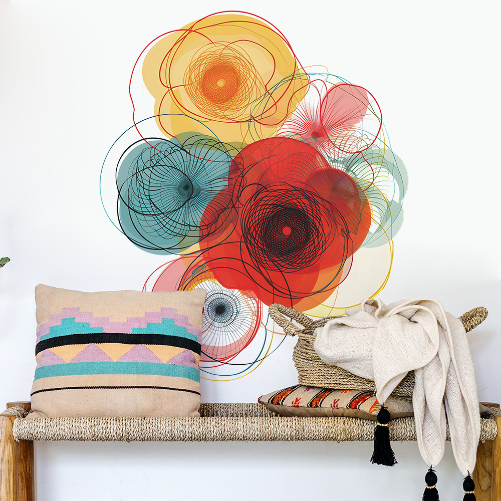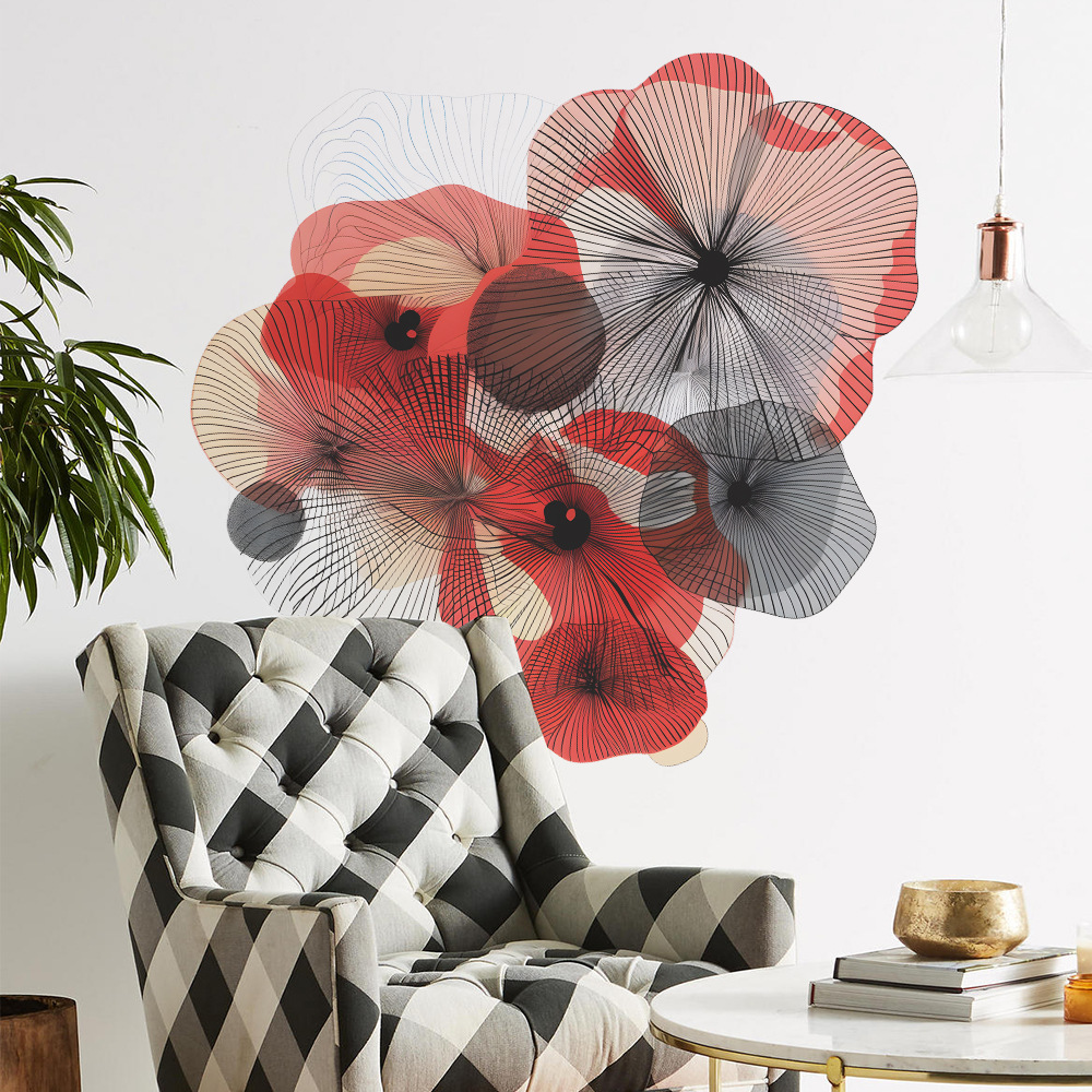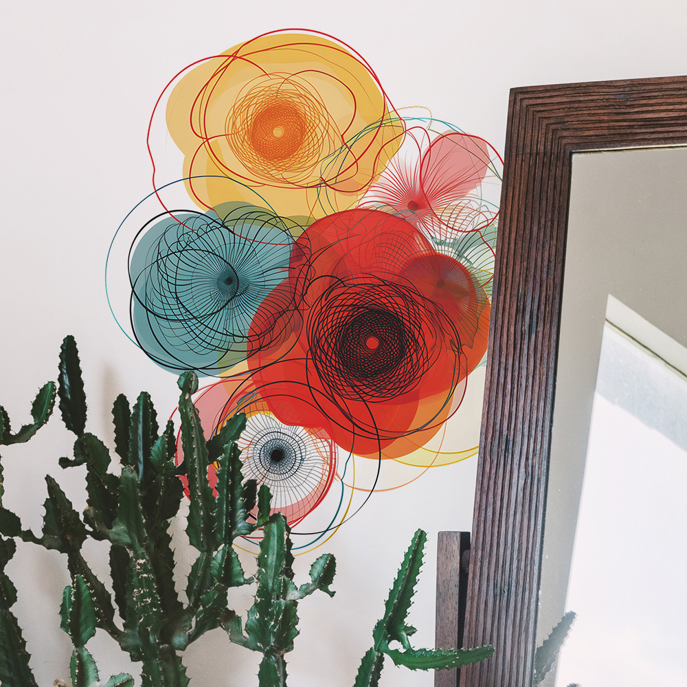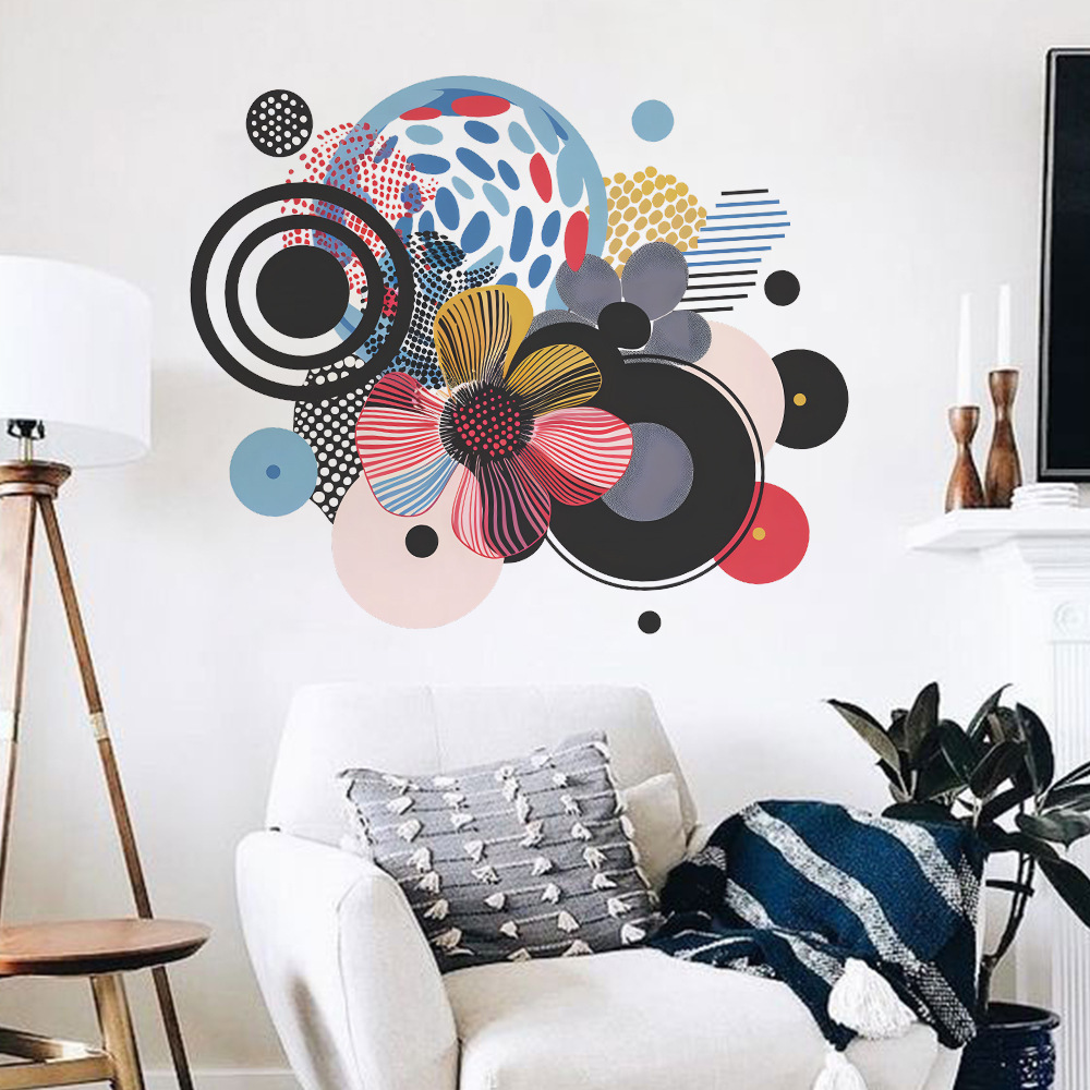 팬 Xi 창조적 인 컬러 블록 라인 꽃 침실 거실 배경 미화 장식 벽 스티커 도매스토어 가기