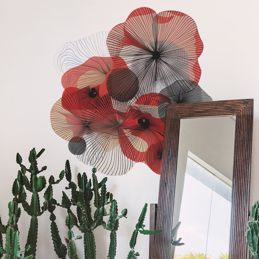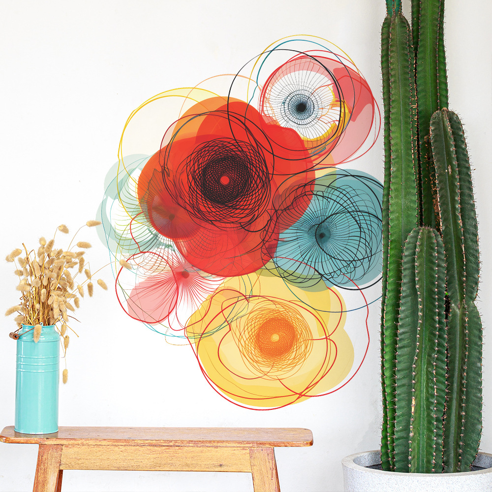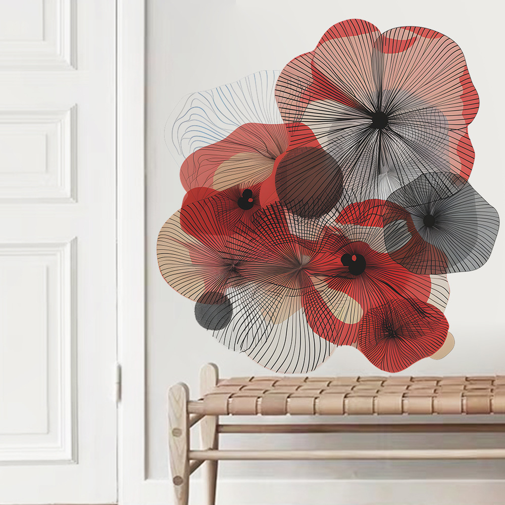 팬 Xi 창조적 인 컬러 블록 라인 꽃 침실 거실 배경 미화 장식 벽 스티커 도매