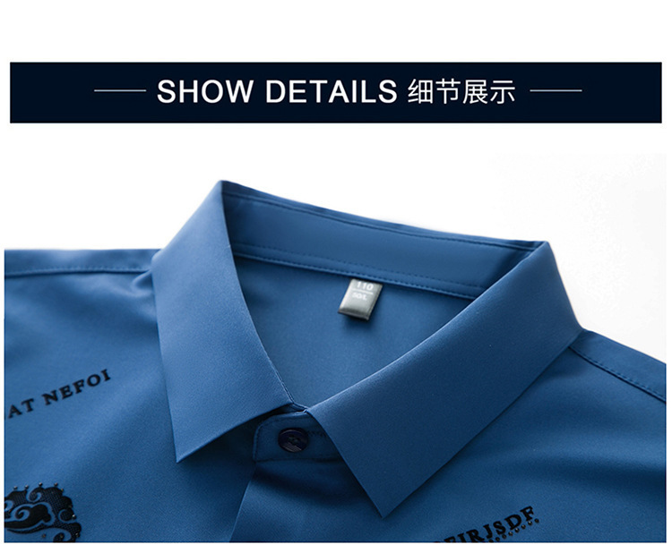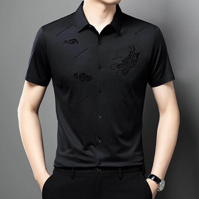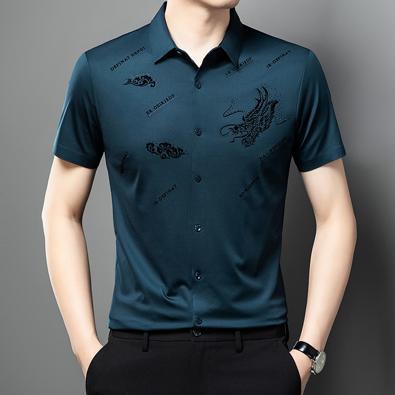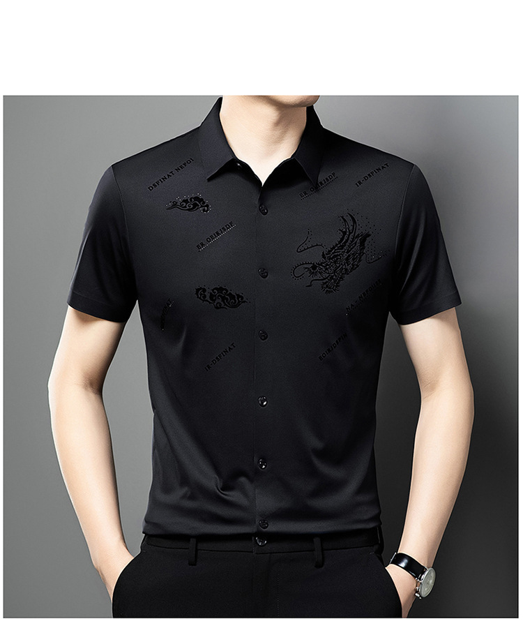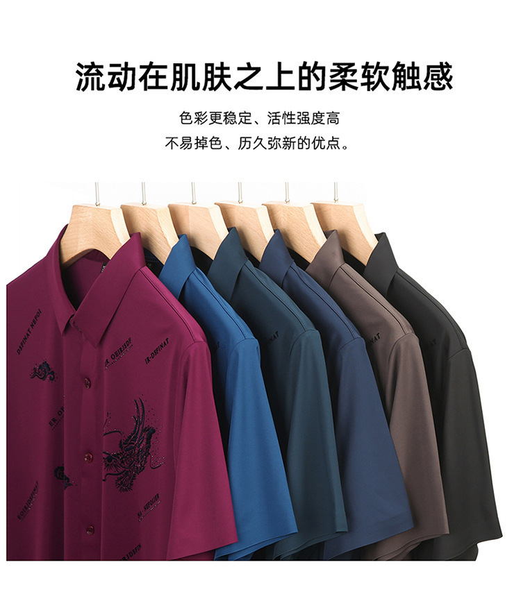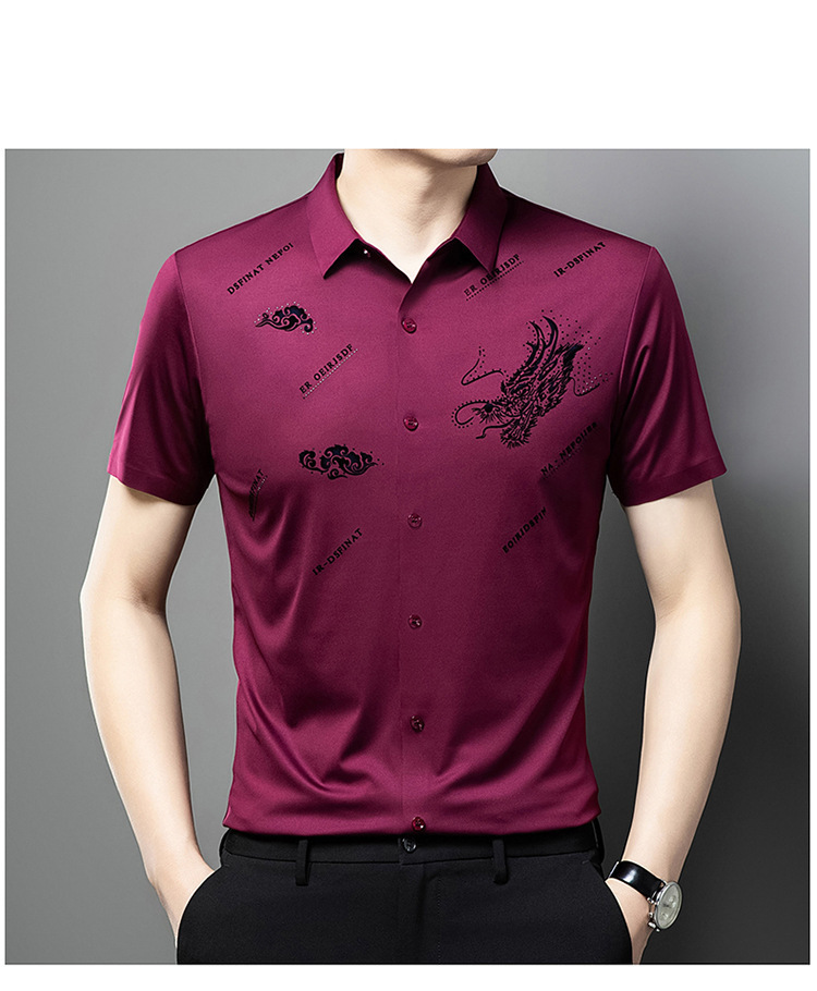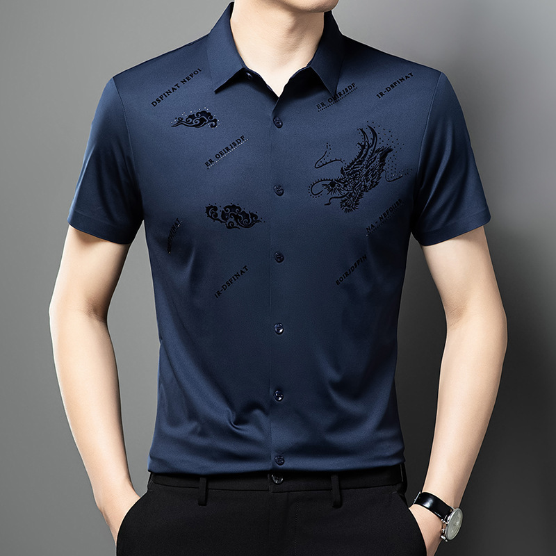 夏季新款男式短袖无痕衬衫休闲男装上衣时尚印花免烫薄款衬衣