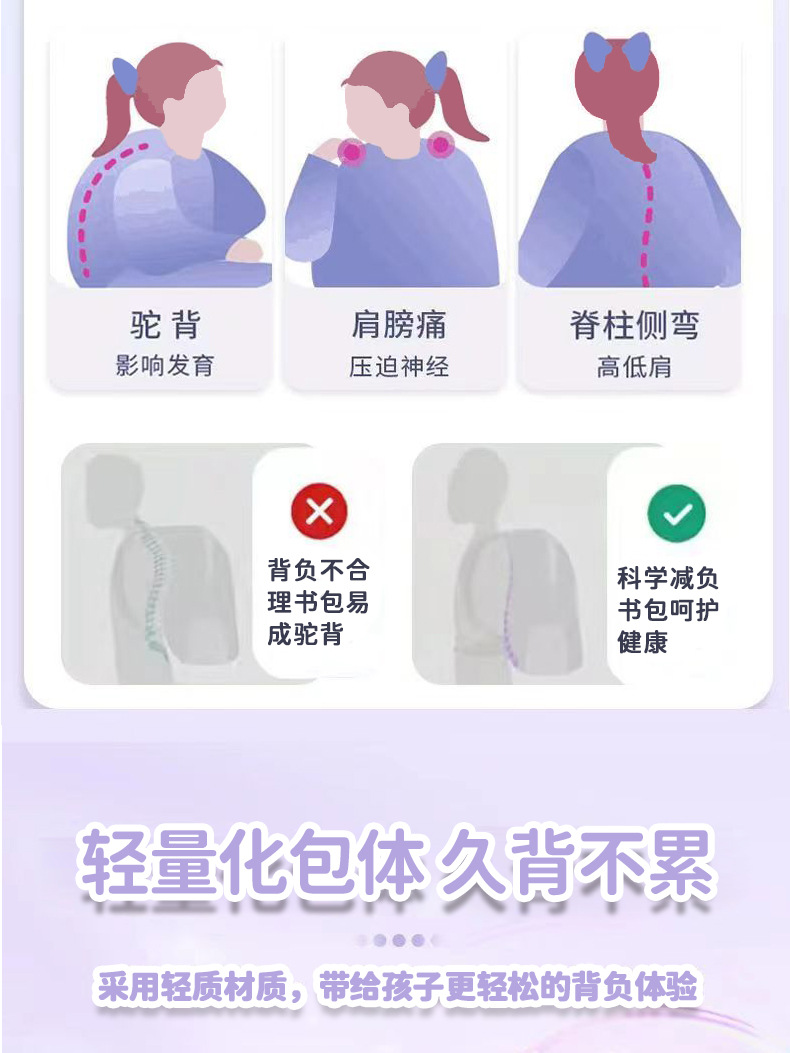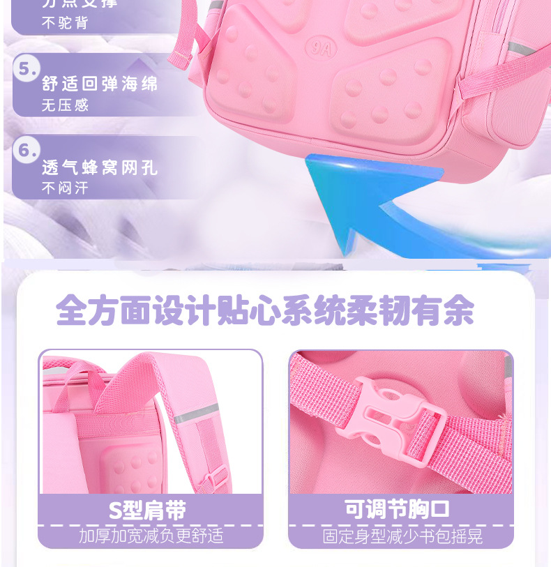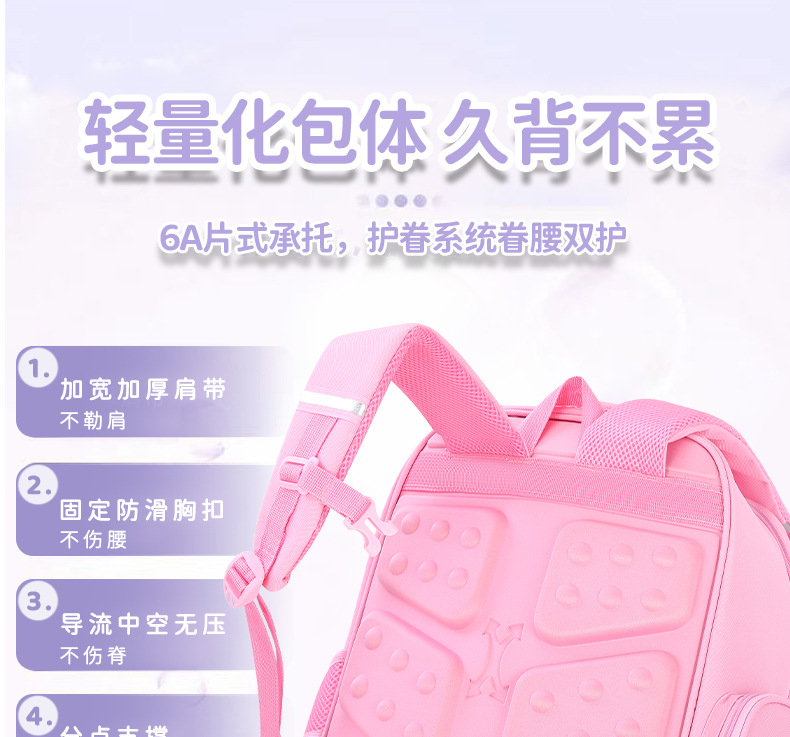 새로운 어린이 가방 소녀 초등학교 남학생과 여학생 1, 2, 3, 3, 6 3 차원 대용량 초경량 척추 보호
