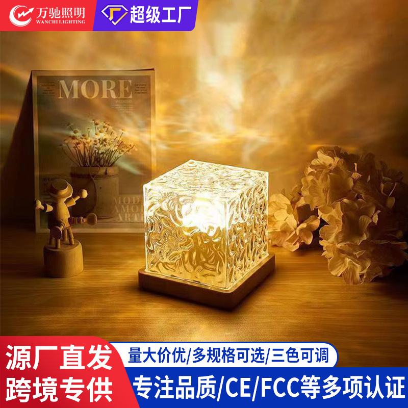 국경 그물 붉은 회전 물 리플 나이트 라이트 침대 옆 불꽃 분위기 램프 낭만적 인 선물 프로젝션 램프 워터 프린트 램프