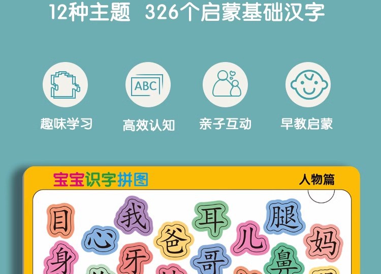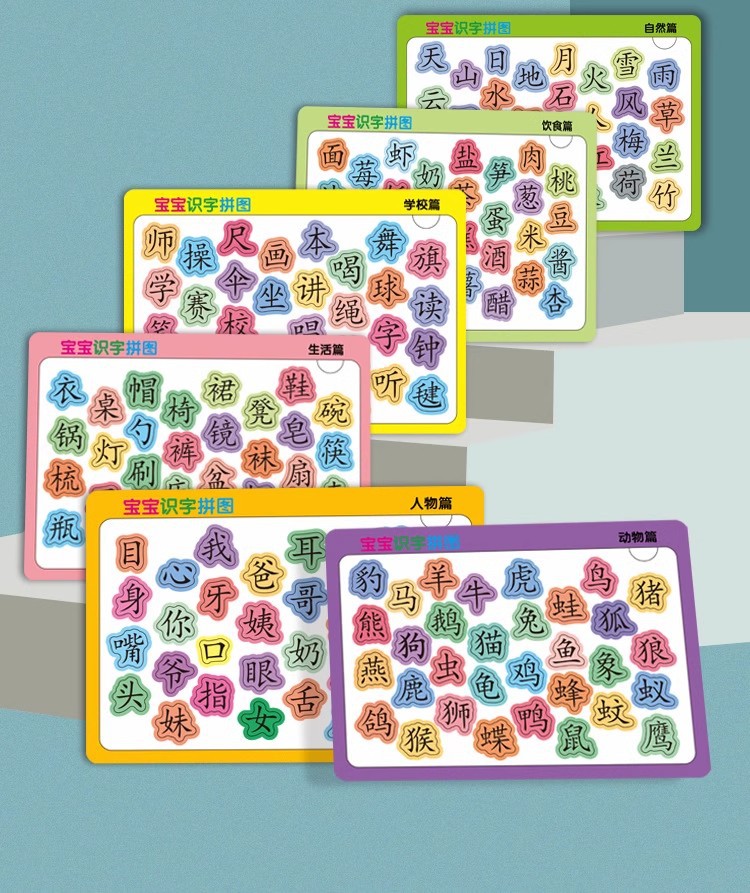 아기 유아 문맹 퇴치 퍼즐 3 ~ 6 세 어린이 재미있는 캐릭터 인식 카드 조기 교육 계몽주의 중국어 문자 교육 완구스토어 가기