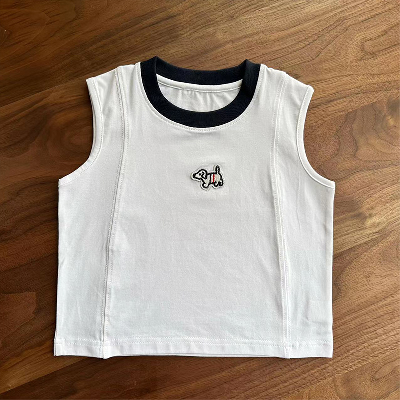 어린이 민소매 조끼 여름 새로운 아기 크루 넥 강아지 민소매 베이스 셔츠 아기 품질 더블 라인 웨이스트 코트 트렌디