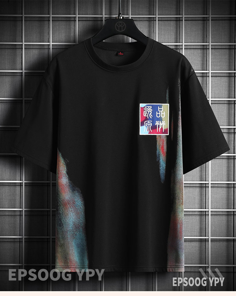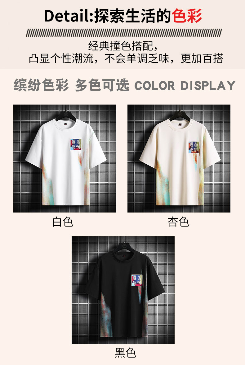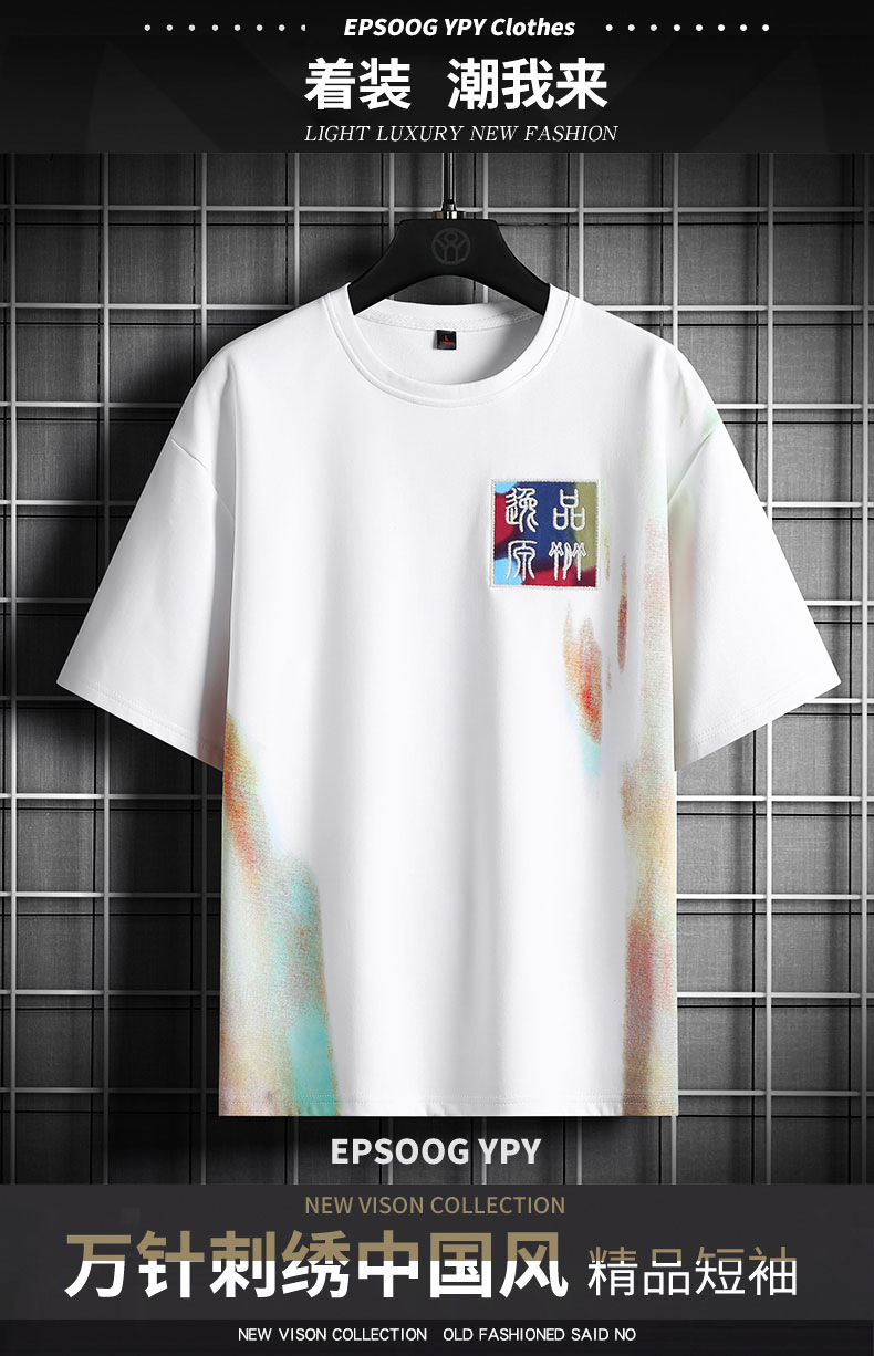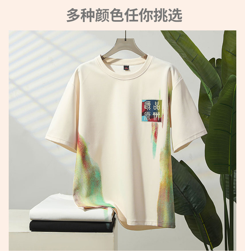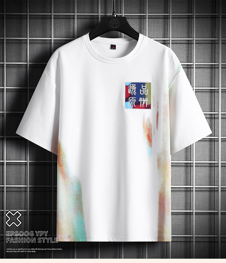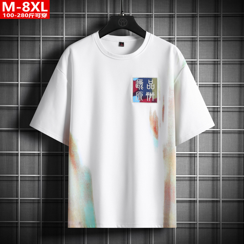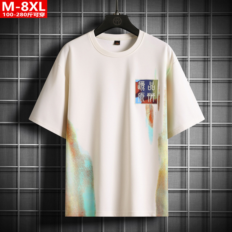 여름 유행 홍콩 스타일 남성 인쇄 라운드 넥 반팔 티셔츠 지방 남성 플러스 사이즈 플러스 사이즈 느슨한 캐주얼 티셔츠스토어 가기