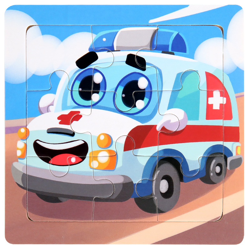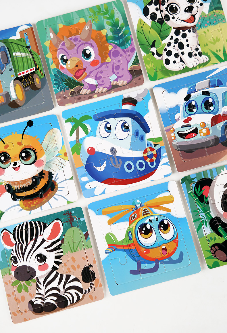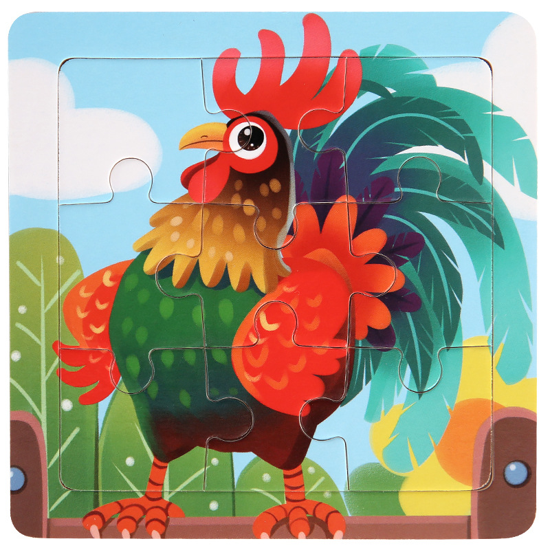 어린이 조기 교육 9 조각 스몰 사이즈 나무 직소 퍼즐 장난감 아기 교육 만화 동물 교통인지 나무 직소 퍼즐