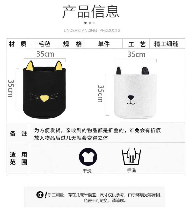 Douyin과 동일한 장난감 둥근 기저귀 만화 고양이와 개 펠트 보관통 더러운 옷 잔해물 애완 동물 보관 수제