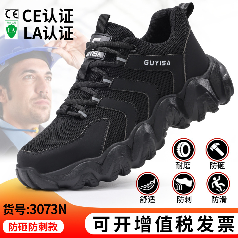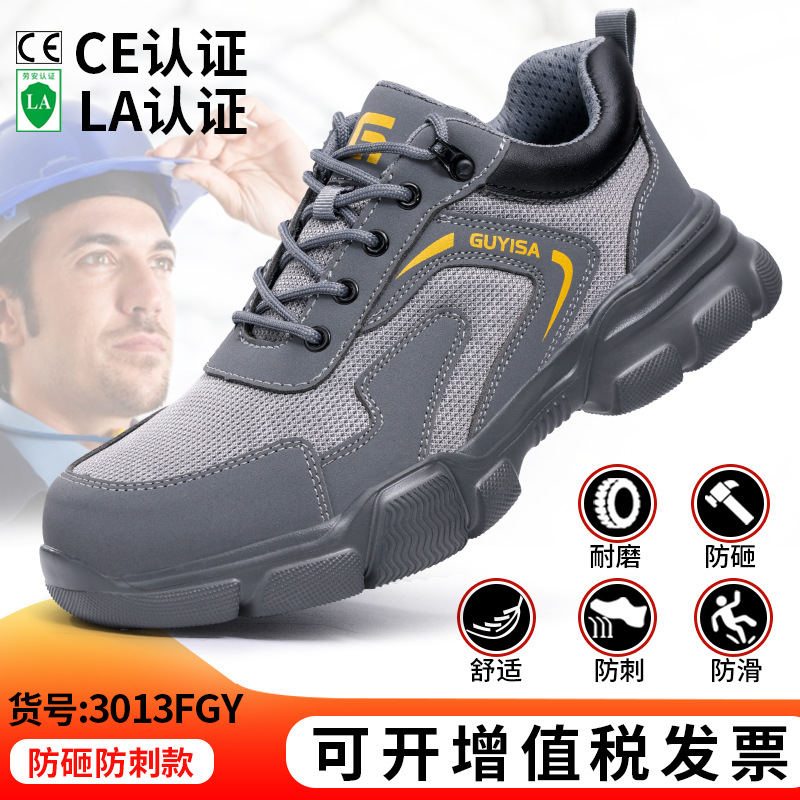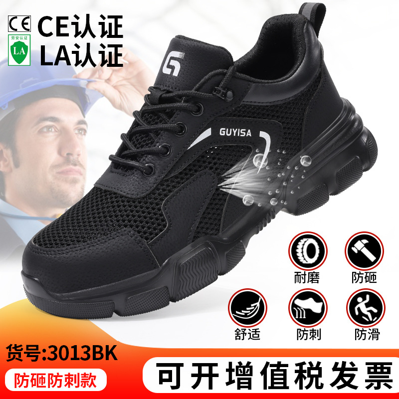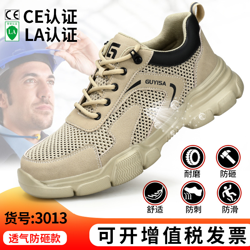 여름철 남성용 노동 보호화, 통기성 좋고 편안하며 가벼운 안전화, 충격 방지 및 펑크 방지 기능, 장시간 서 있어도 발이 피곤하지 않은 작업화
