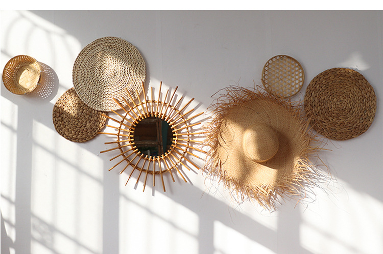 노르딕 인 인도네시아 보헤미안 스트로 짠 등나무 라운드 홈스테이 벽 장식 펜던트 원래 수제 벽 교수형
