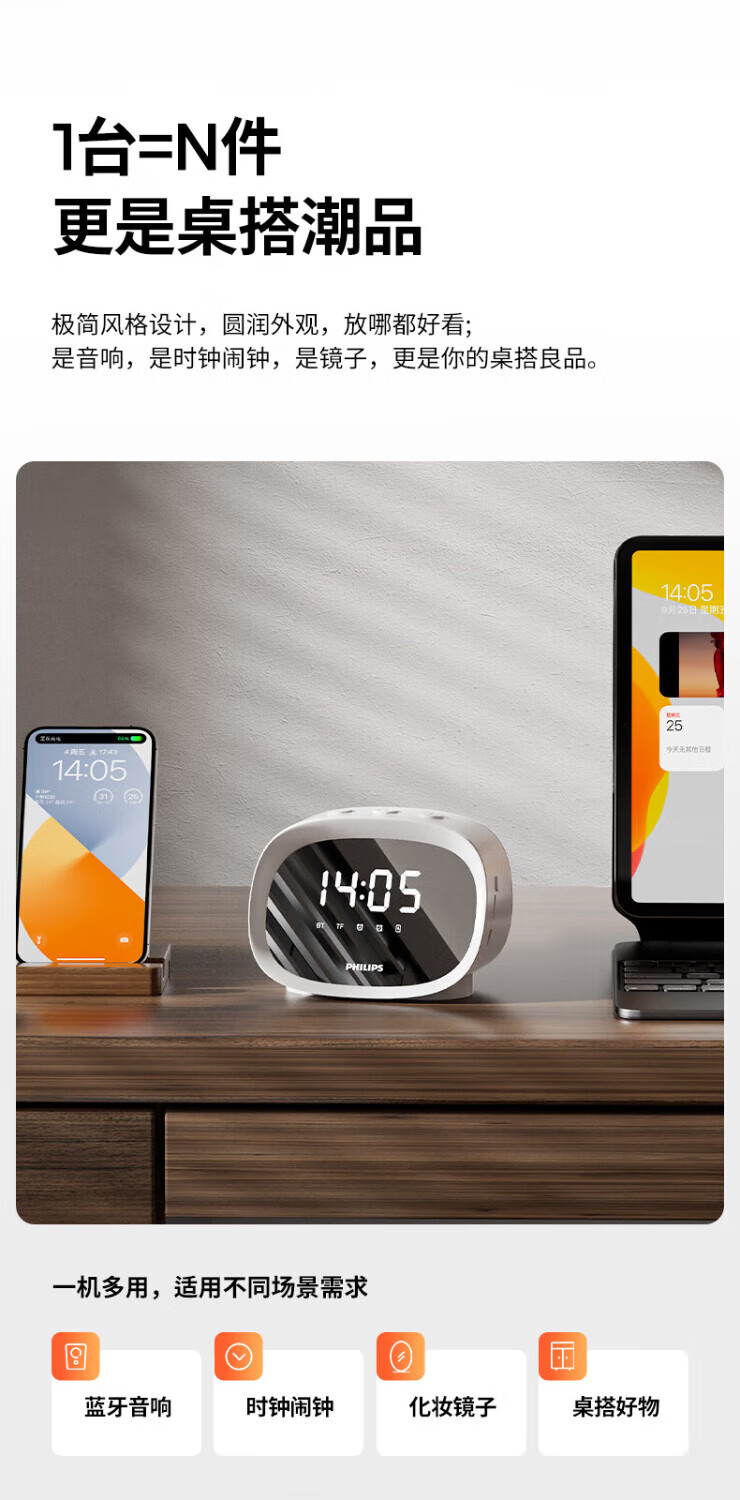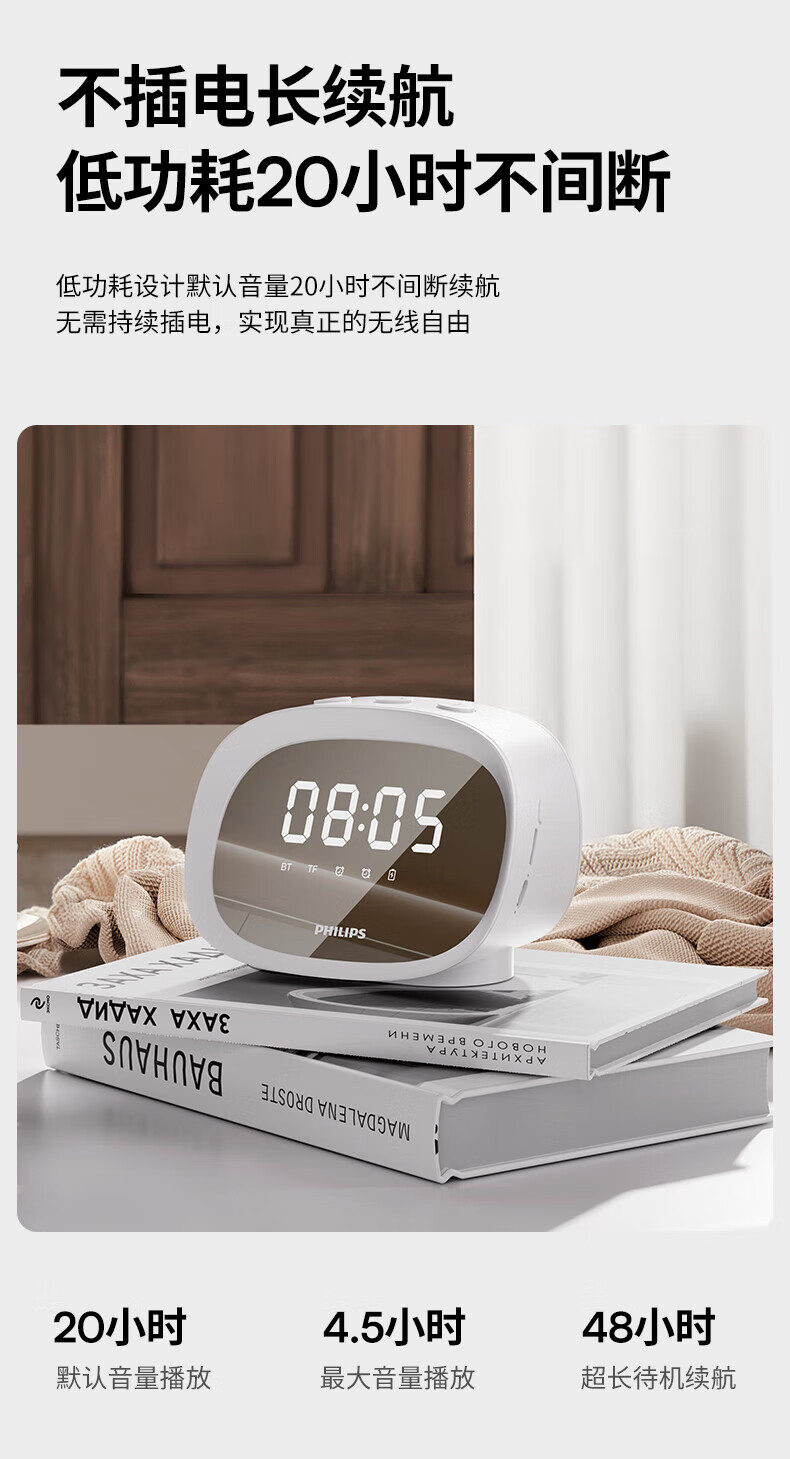 홈 데스크톱 알람 시계 스마트 스피커 필립스 TAS2909 블루투스 미니 작은 사운드 소스 공장 도매스토어 가기