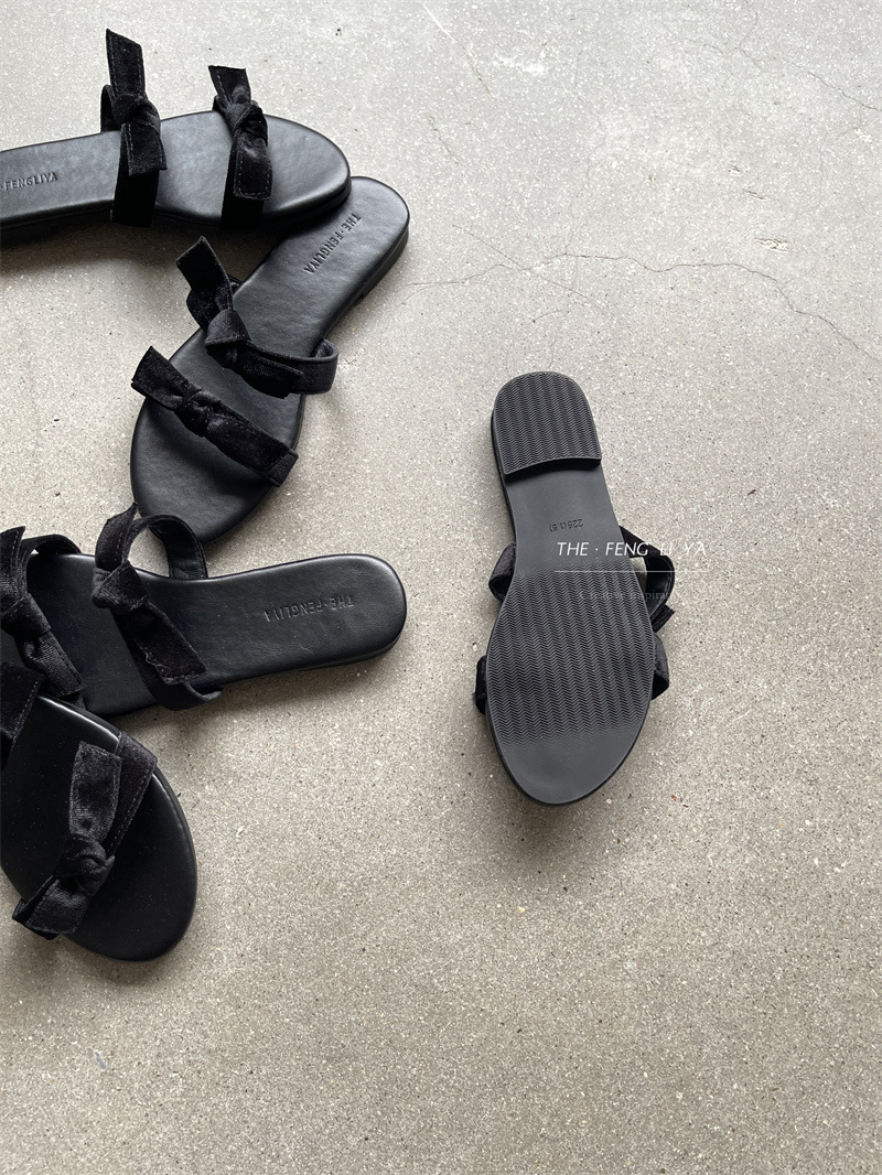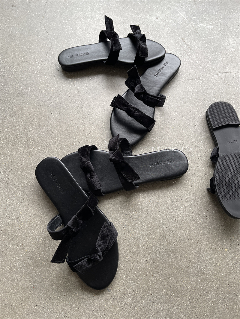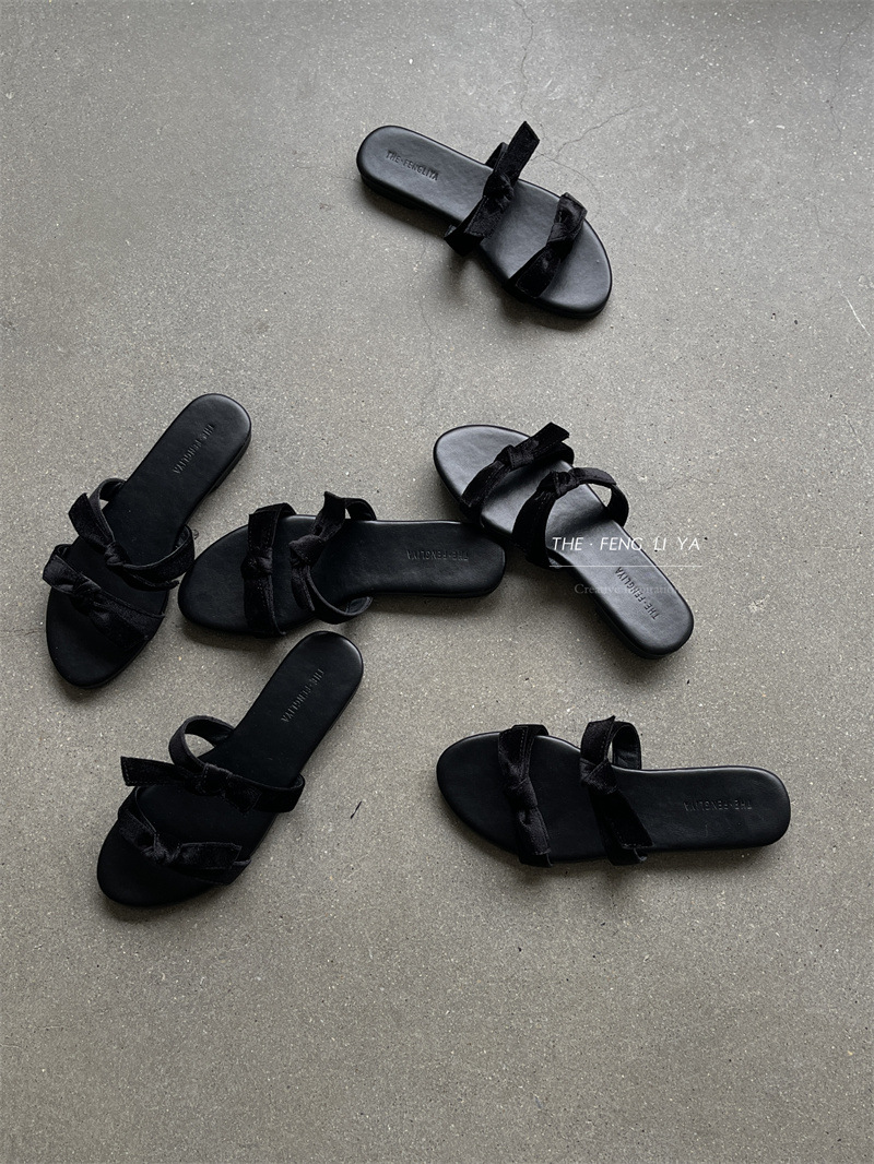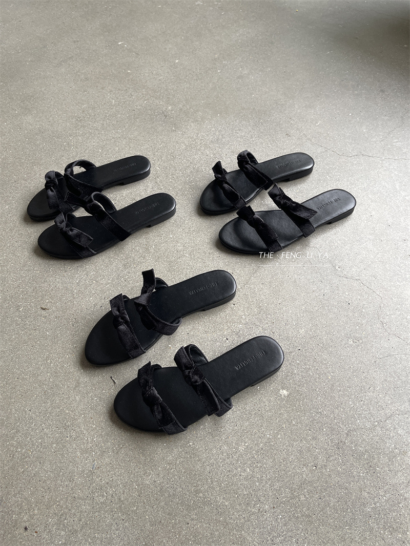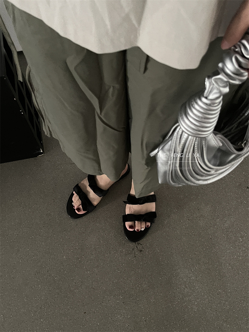 여성을위한 Fengliya 한국식 로우 힐 플랫 오픈 발가락 보우 샌들 2024 여름 새로운 틈새 비치 샌들