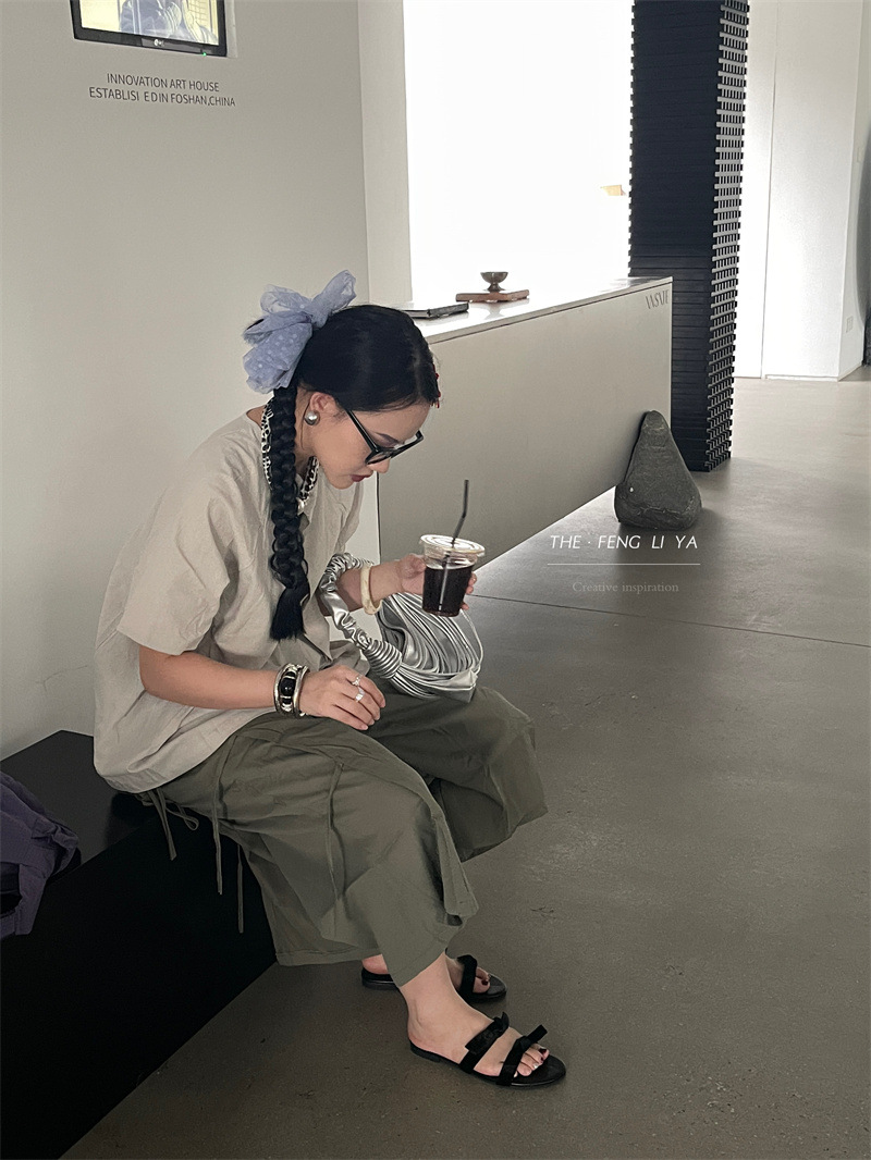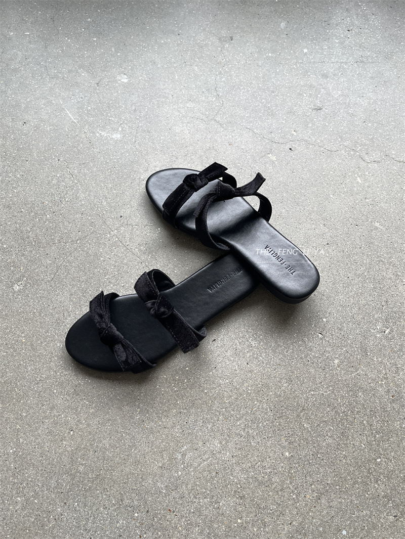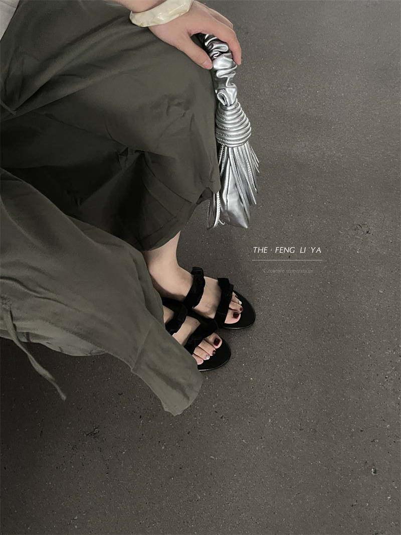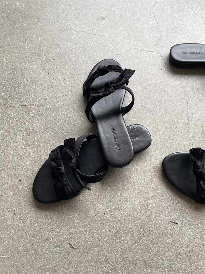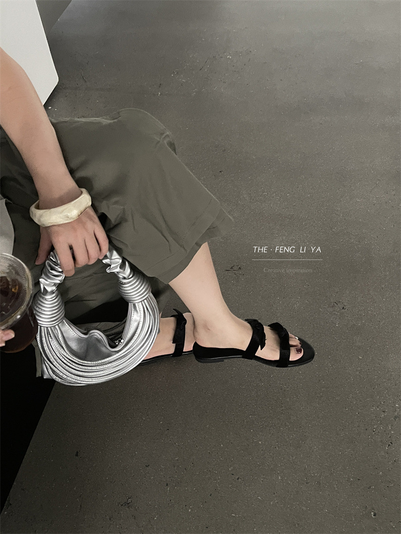 여성을위한 Fengliya 한국식 로우 힐 플랫 오픈 발가락 보우 샌들 2024 여름 새로운 틈새 비치 샌들
