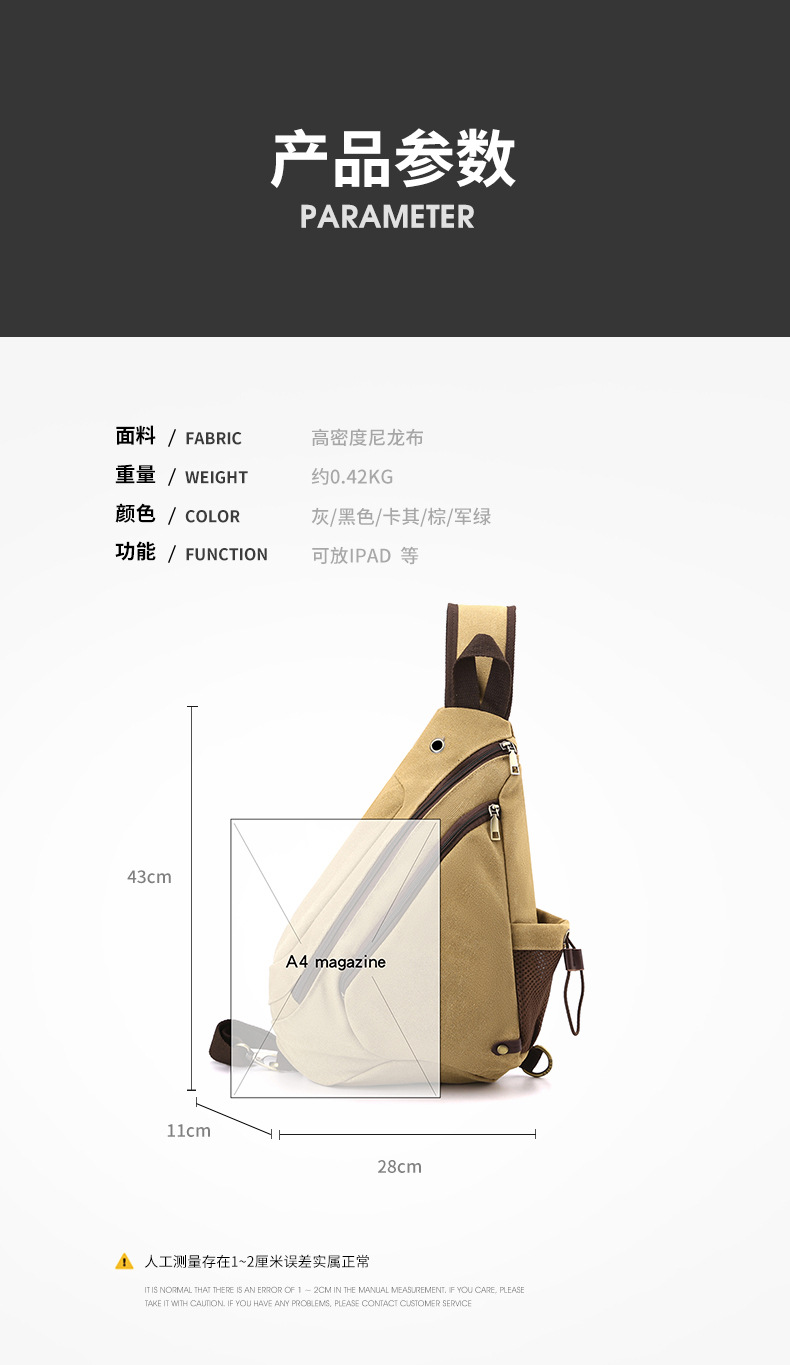캔버스 새로운 국경 남성 가방 유행 남녀 학생 가슴 가방 캐주얼 어깨 크로스 바디 백 여행 작은 배낭