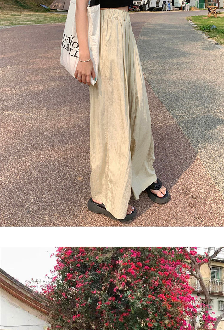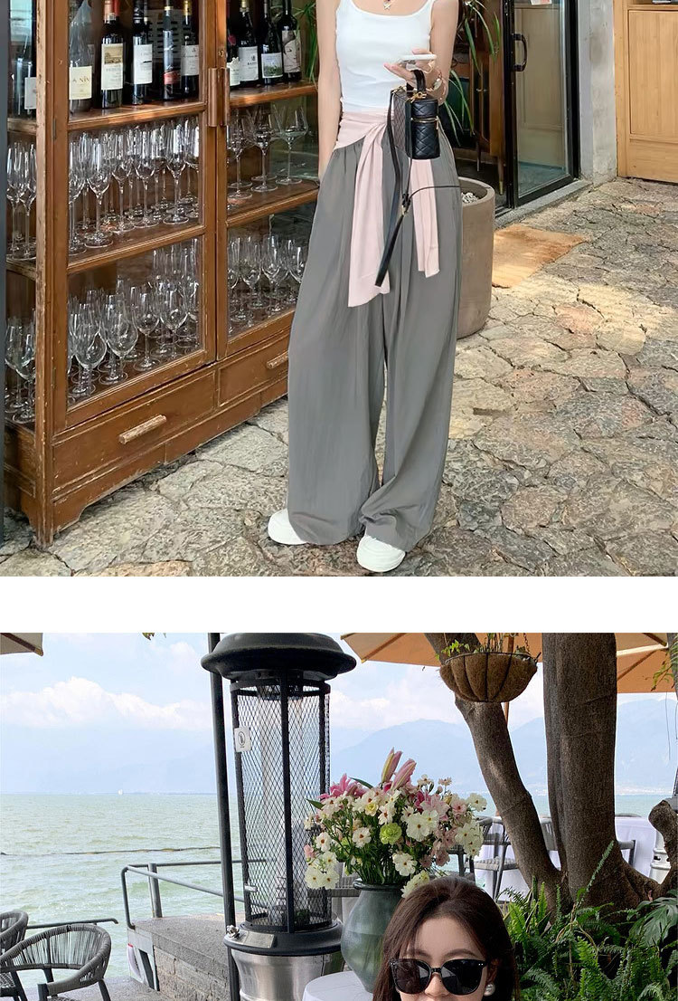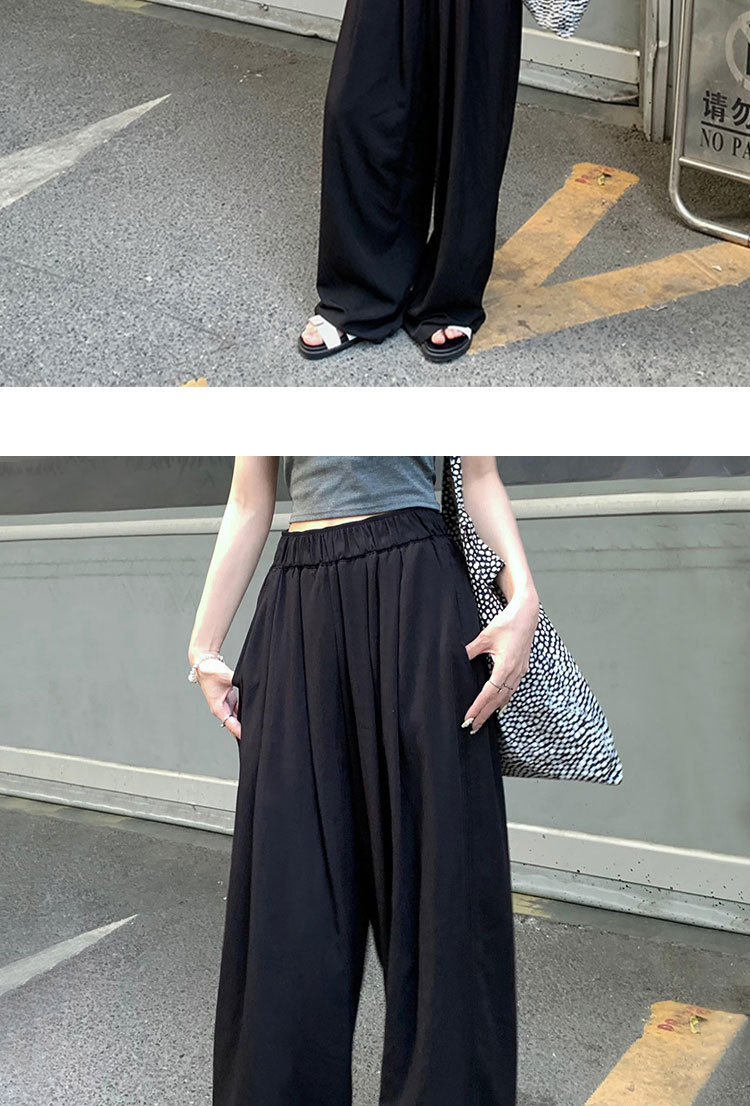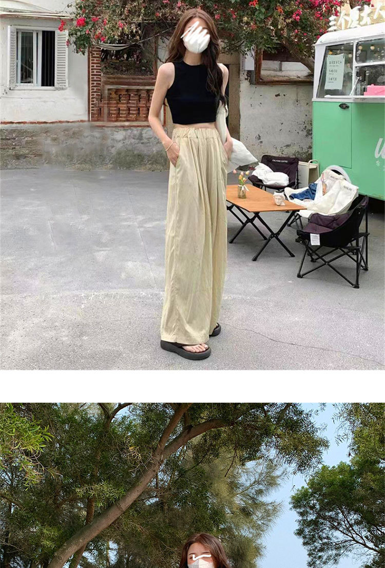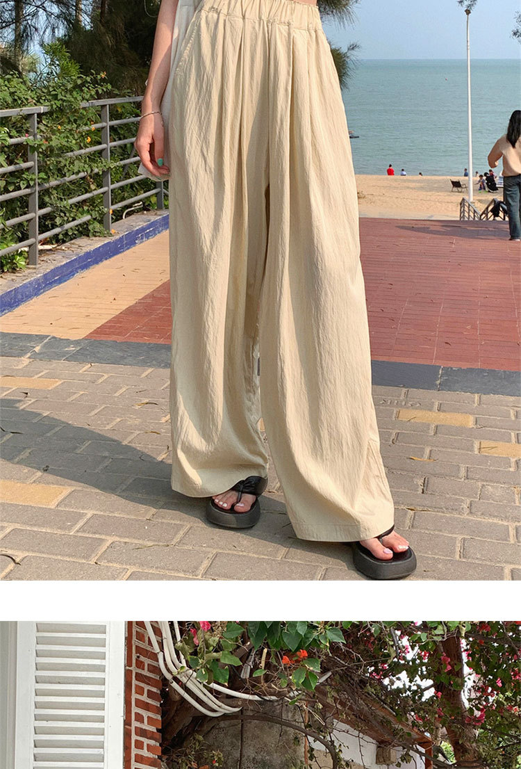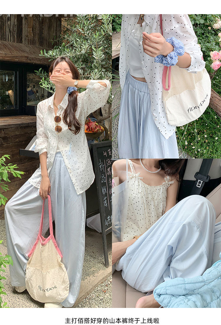 블루 에어 야마모토 바지 마이크로 주름 질감 느슨한 허리 넓은 다리 캐주얼 바지 여성용 게으른 서랍 선스크린 바지