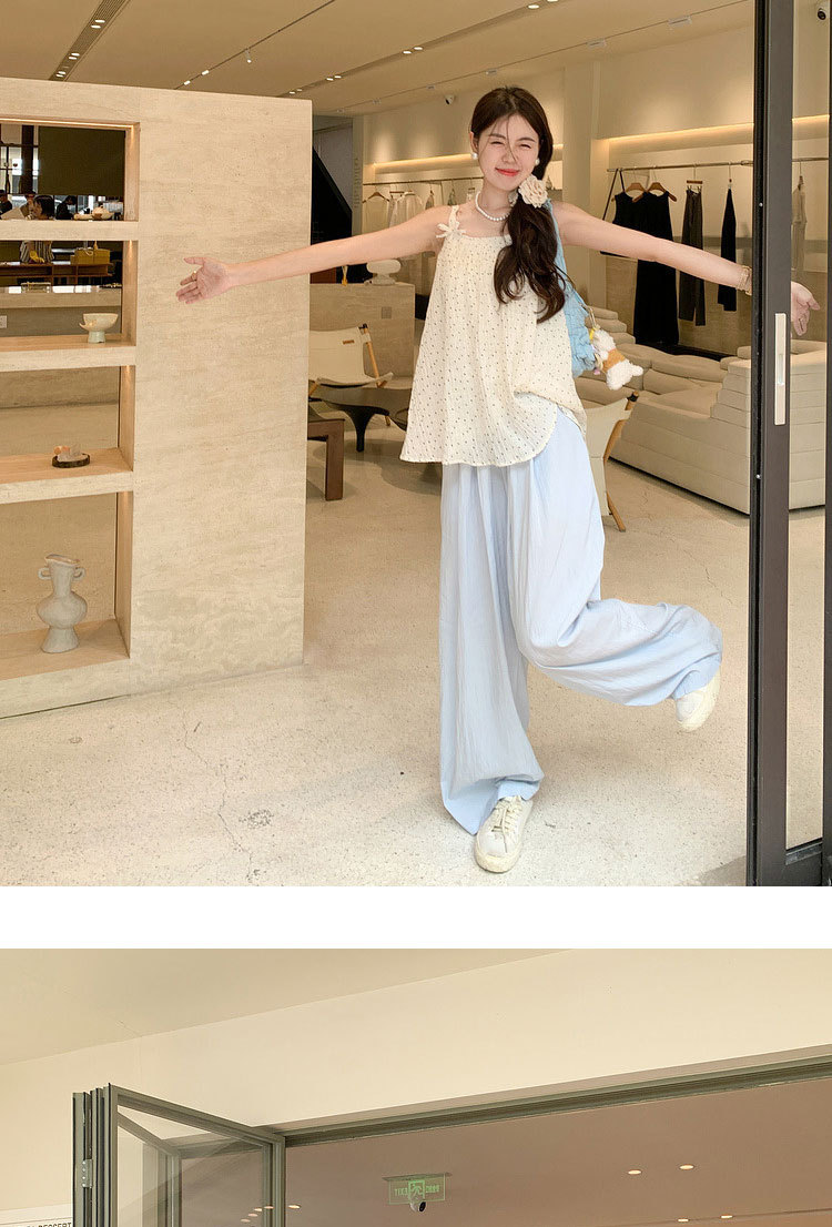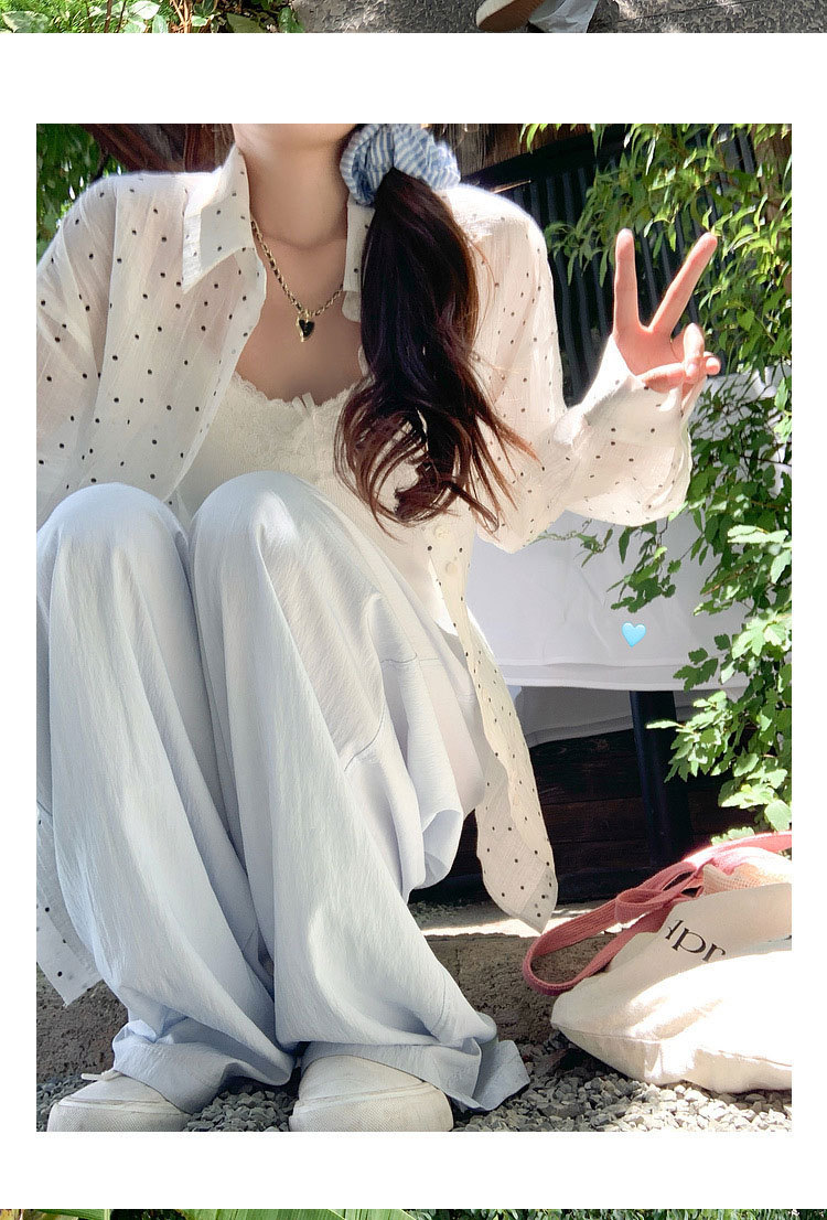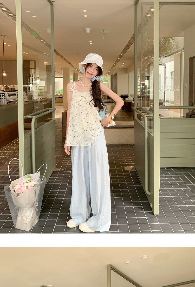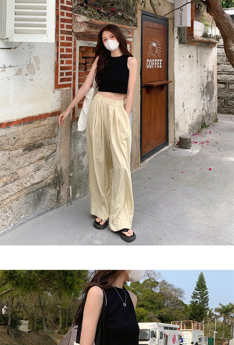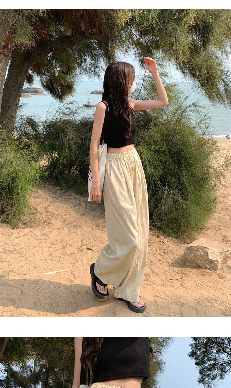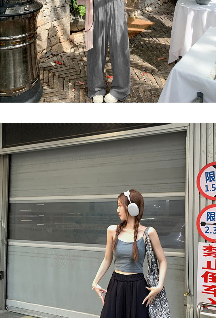 블루 에어 야마모토 바지 마이크로 주름 질감 느슨한 허리 넓은 다리 캐주얼 바지 여성용 게으른 서랍 선스크린 바지