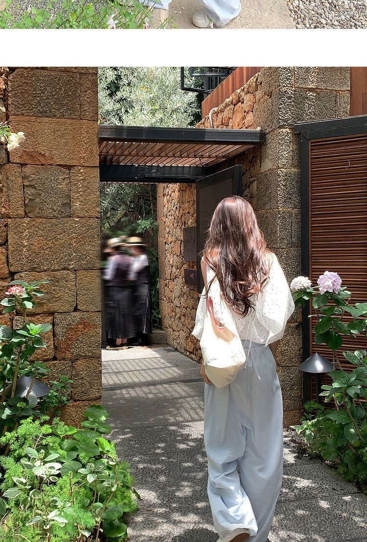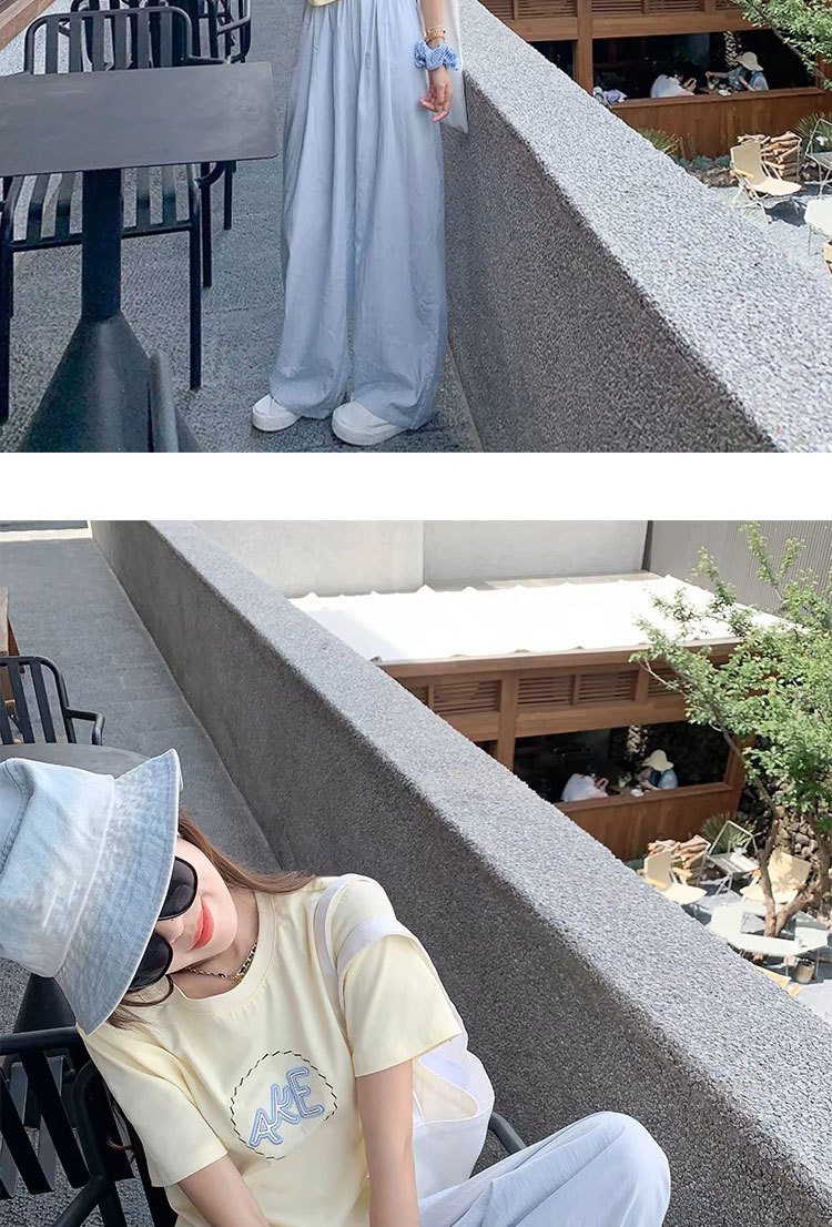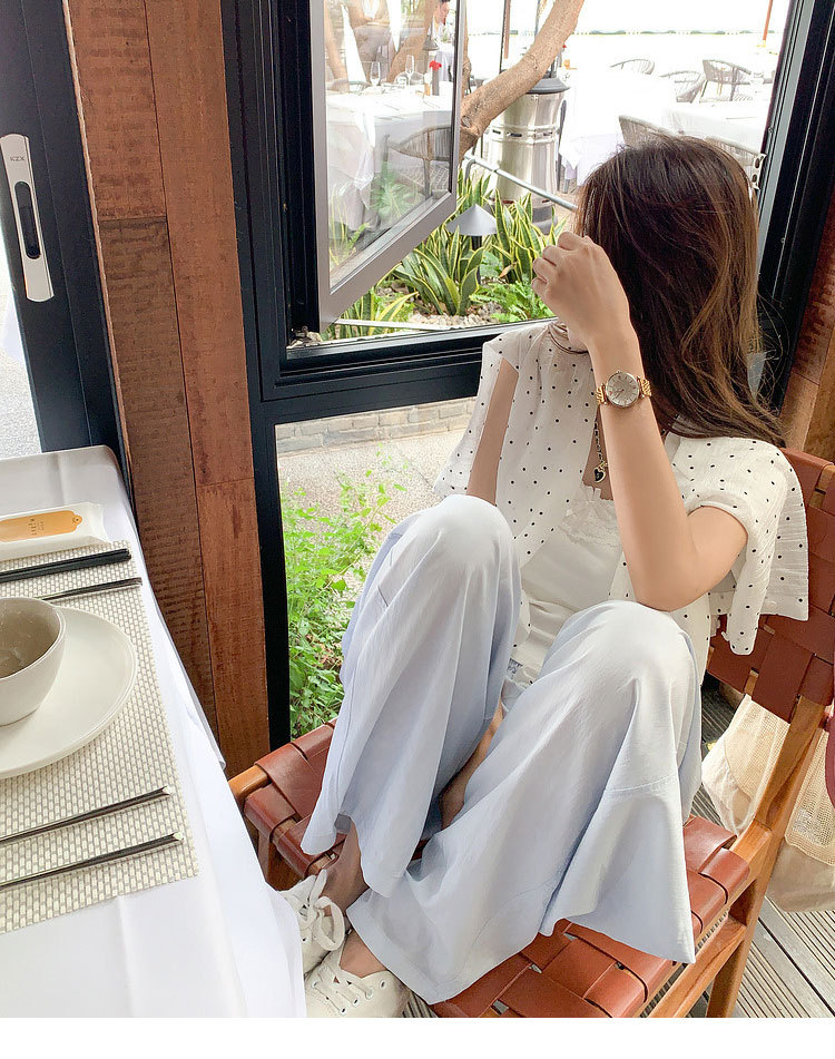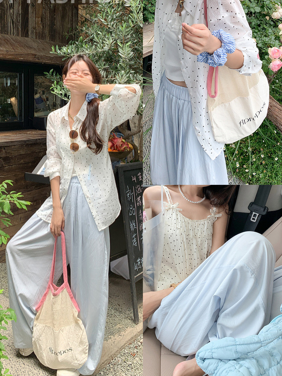 블루 에어 야마모토 바지 마이크로 주름 질감 느슨한 허리 넓은 다리 캐주얼 바지 여성용 게으른 서랍 선스크린 바지스토어 가기