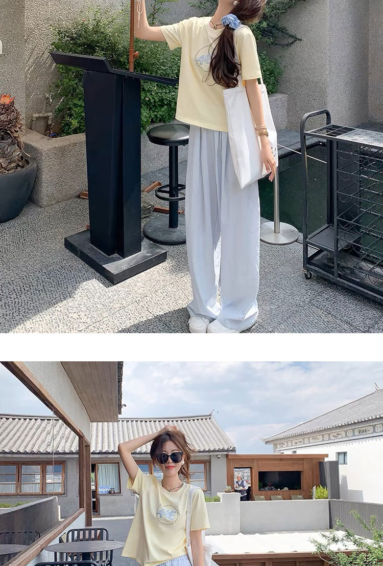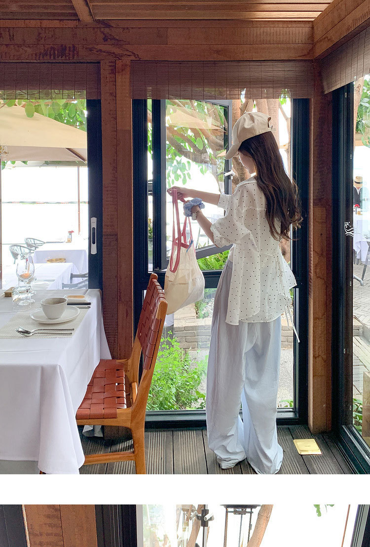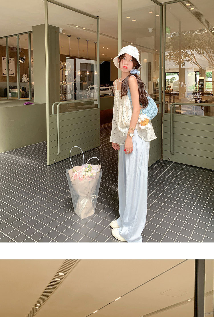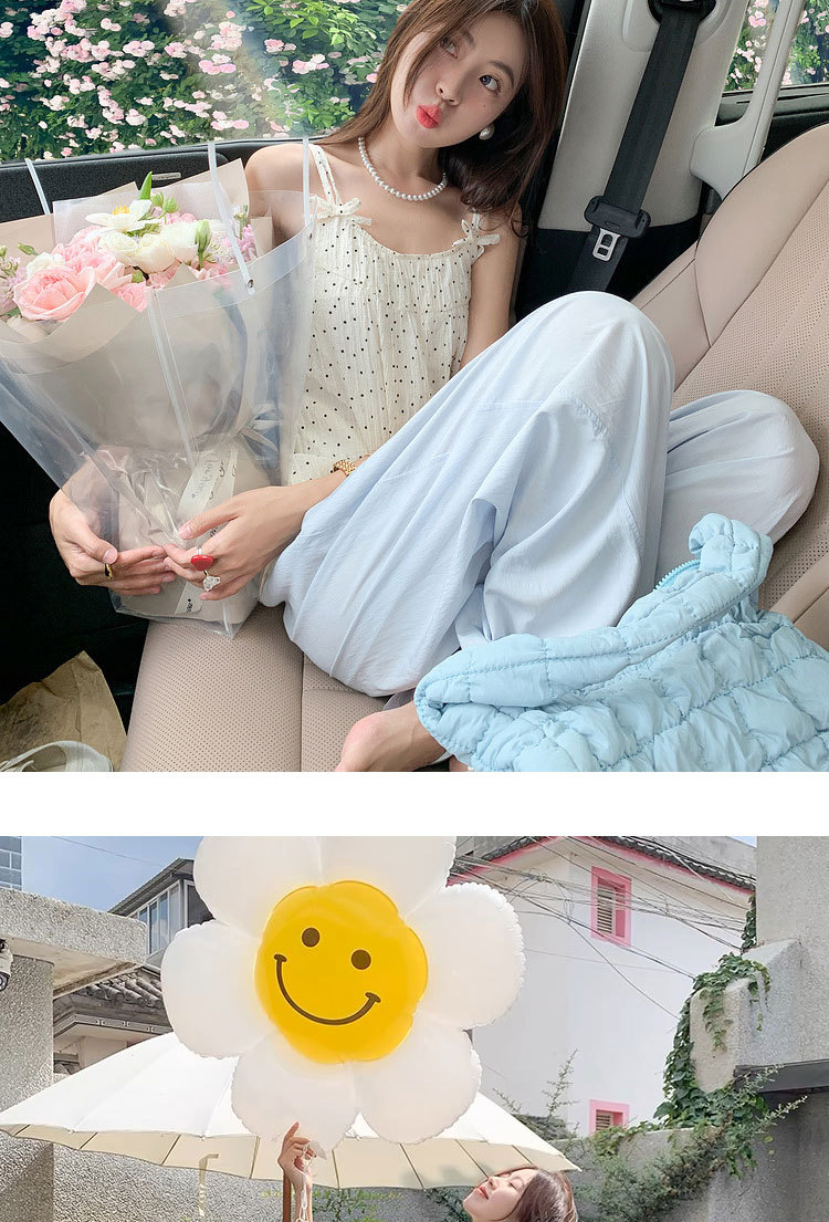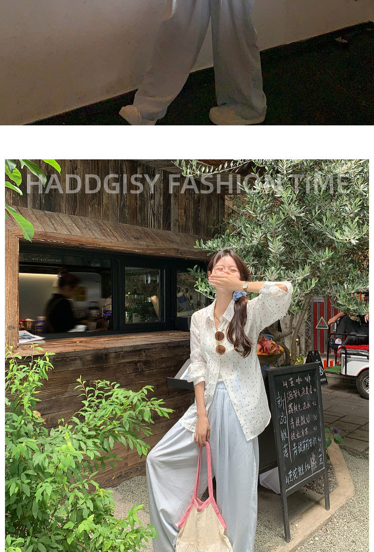 블루 에어 야마모토 바지 마이크로 주름 질감 느슨한 허리 넓은 다리 캐주얼 바지 여성용 게으른 서랍 선스크린 바지스토어 가기