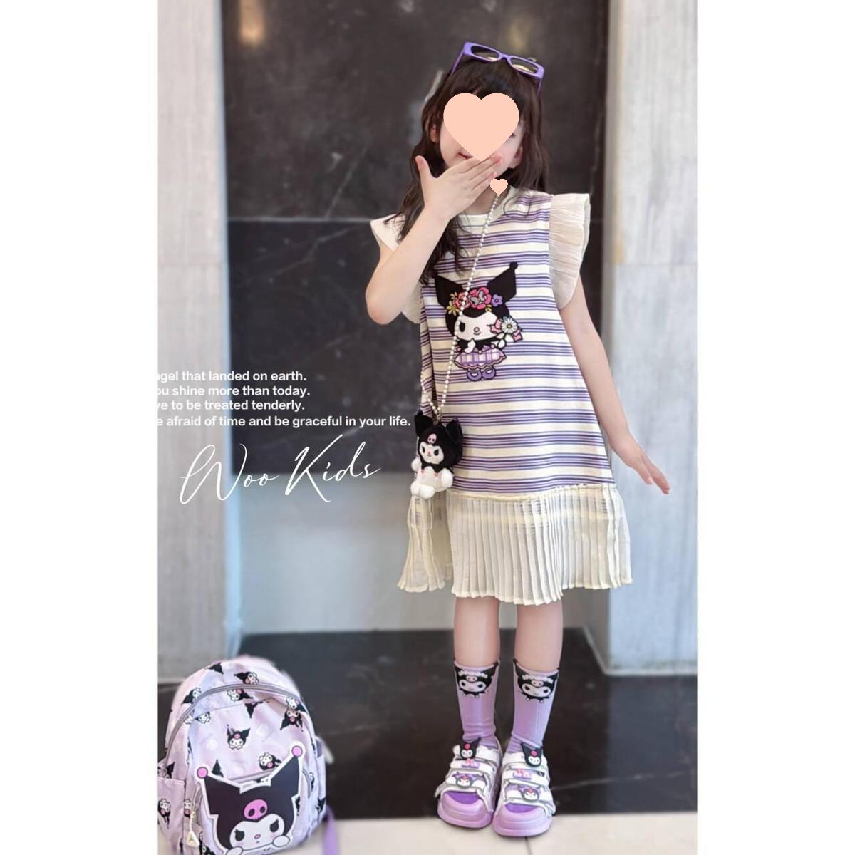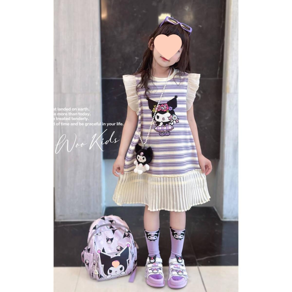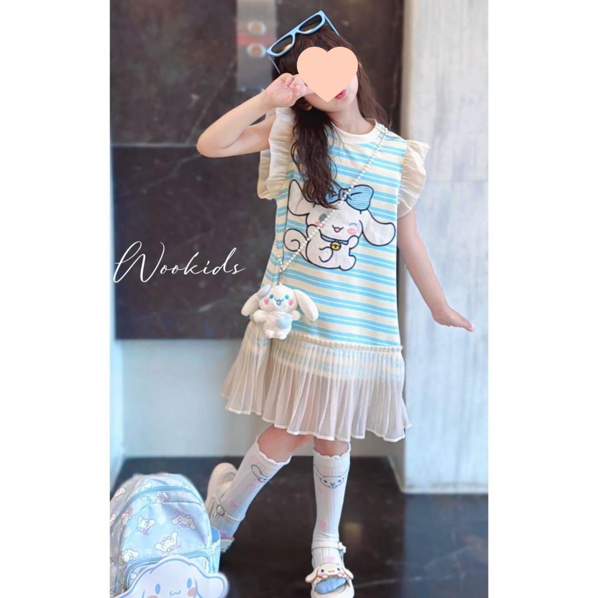 소녀 한국식 패션 캐주얼 민소매 원피스 빅 키즈 여름 새로운 유행 만화 줄무늬 공주 원피스 트렌디스토어 가기