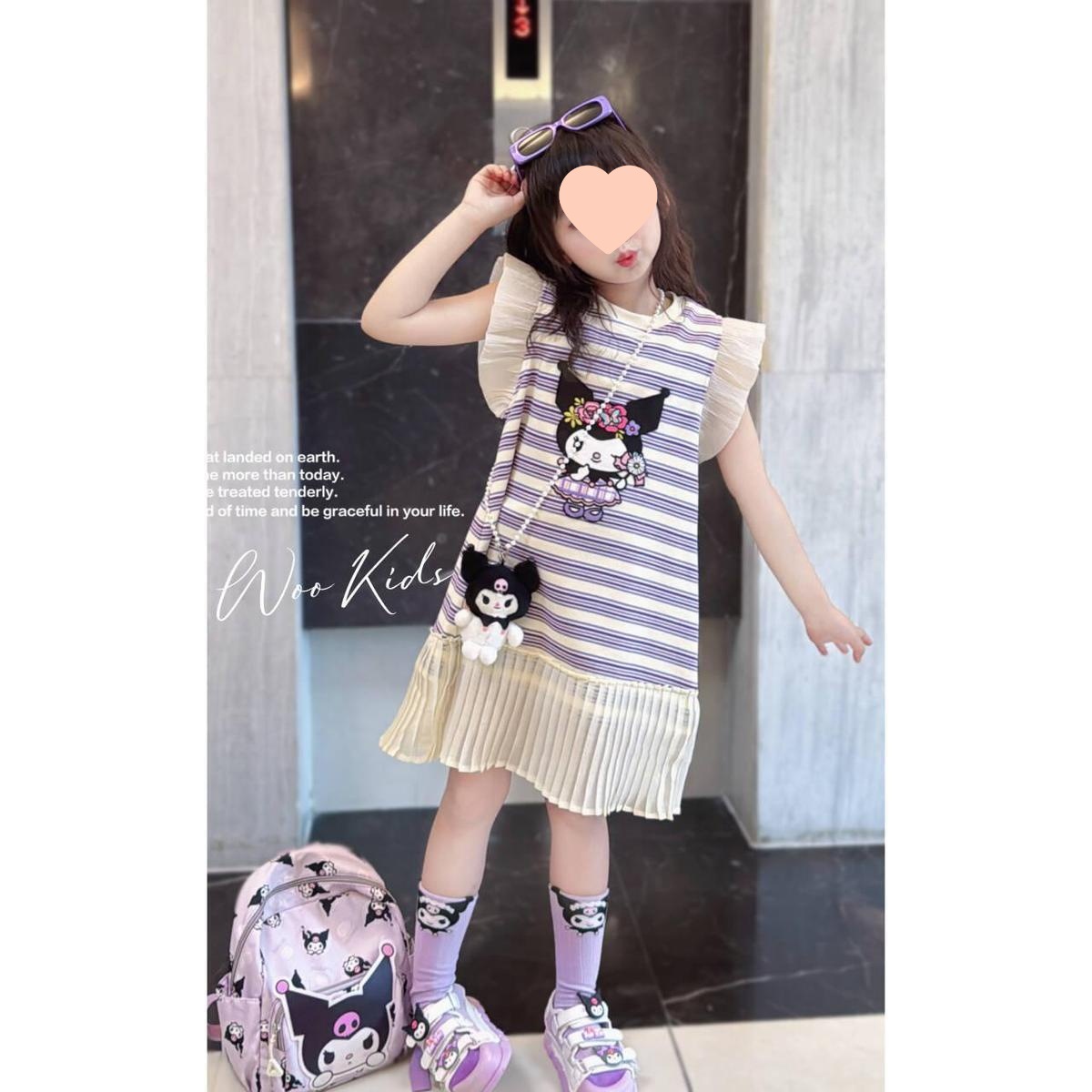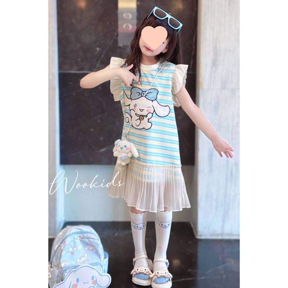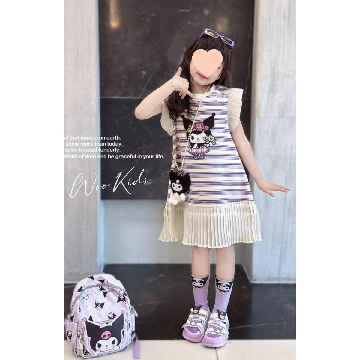 소녀 한국식 패션 캐주얼 민소매 원피스 빅 키즈 여름 새로운 유행 만화 줄무늬 공주 원피스 트렌디스토어 가기