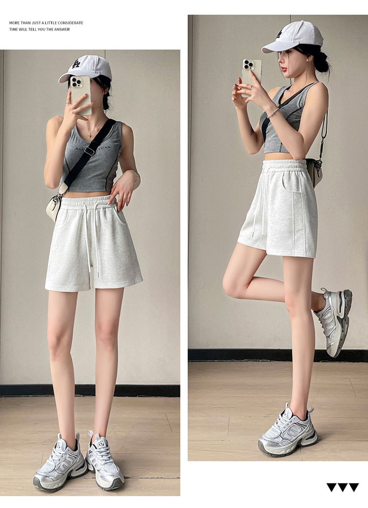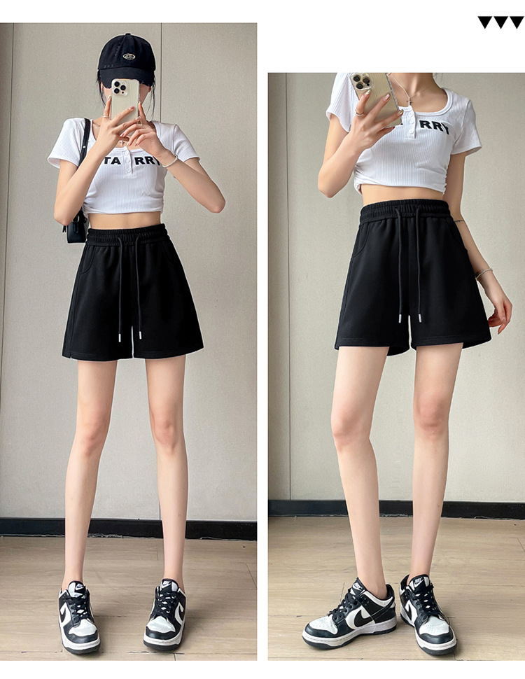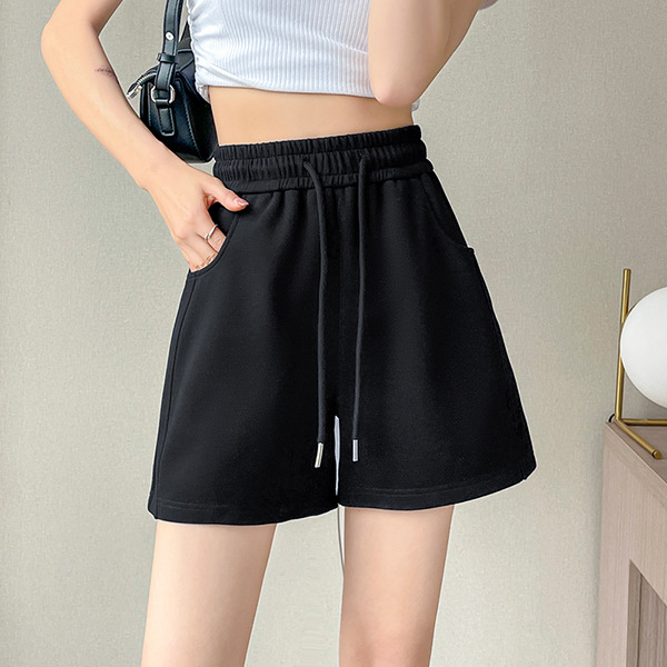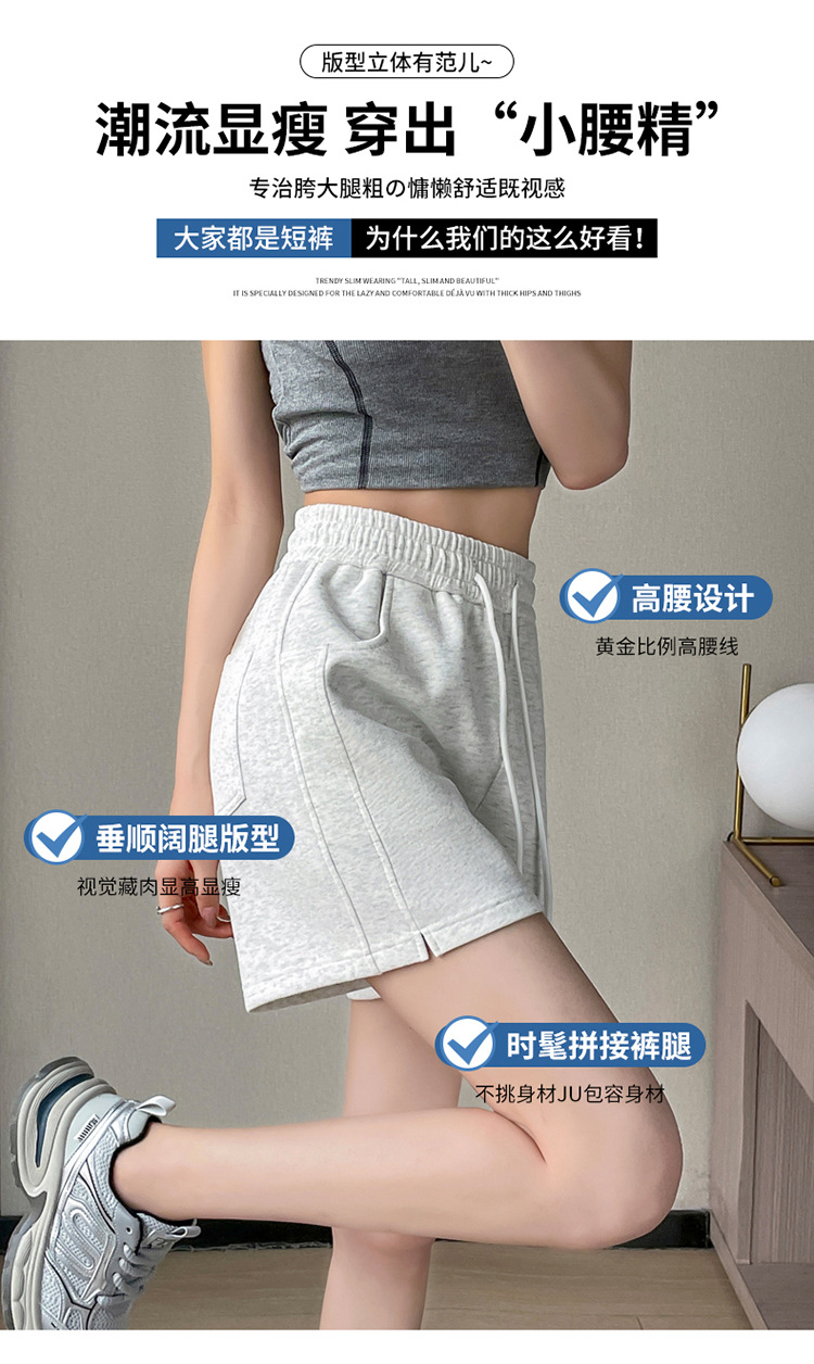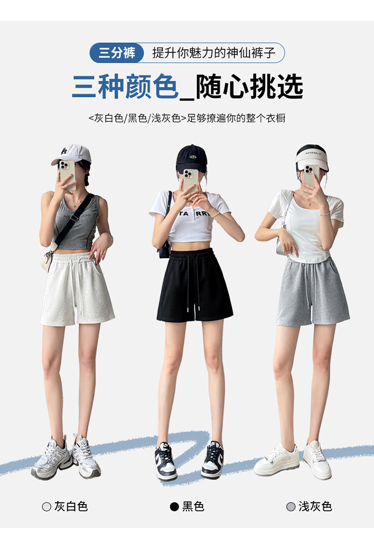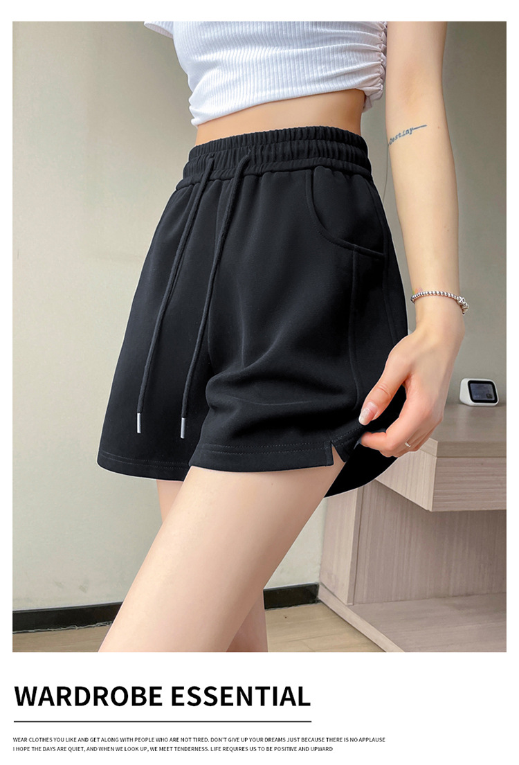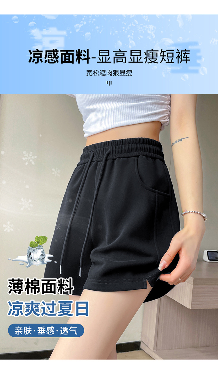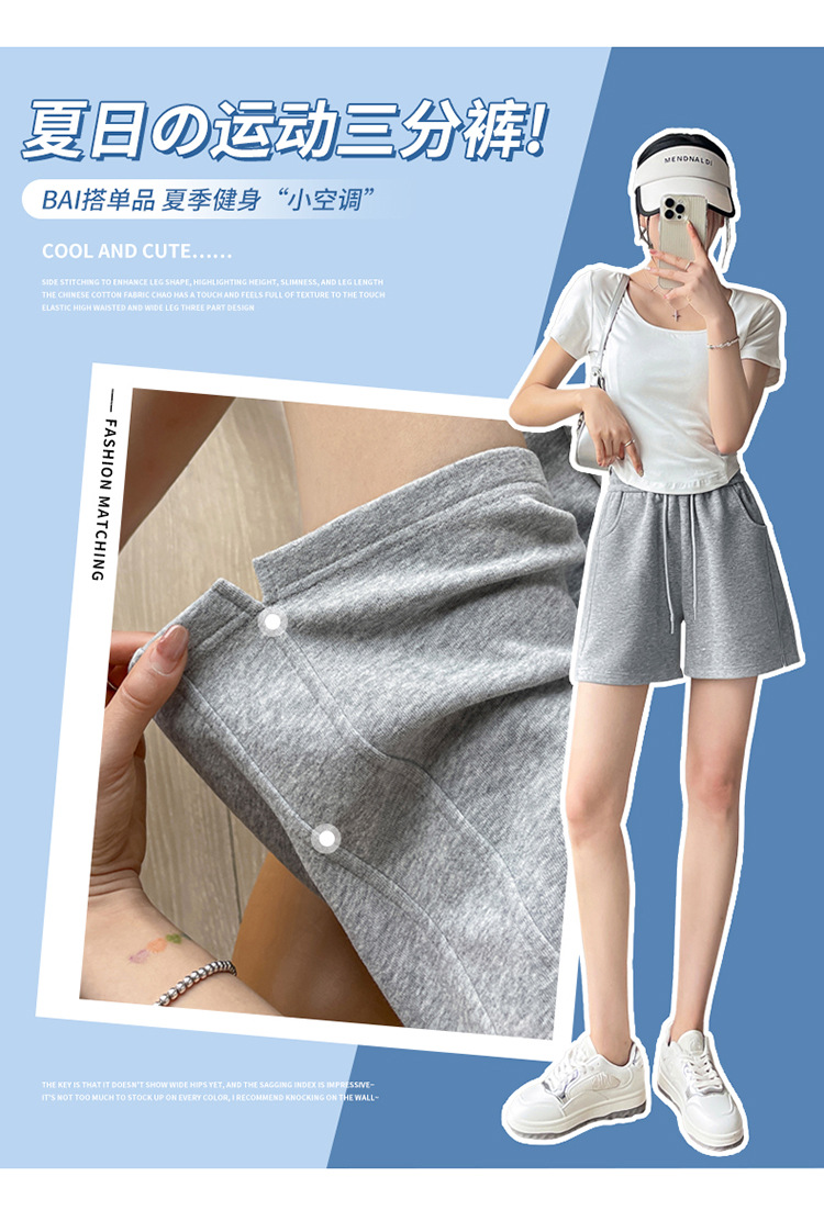 스포츠 반바지 여성 심플 스타일 여름 2025 새로운 캐주얼 코튼 루즈한 작은 슬릿 겉옷 3점 와이드 레그 팬츠스토어 가기
