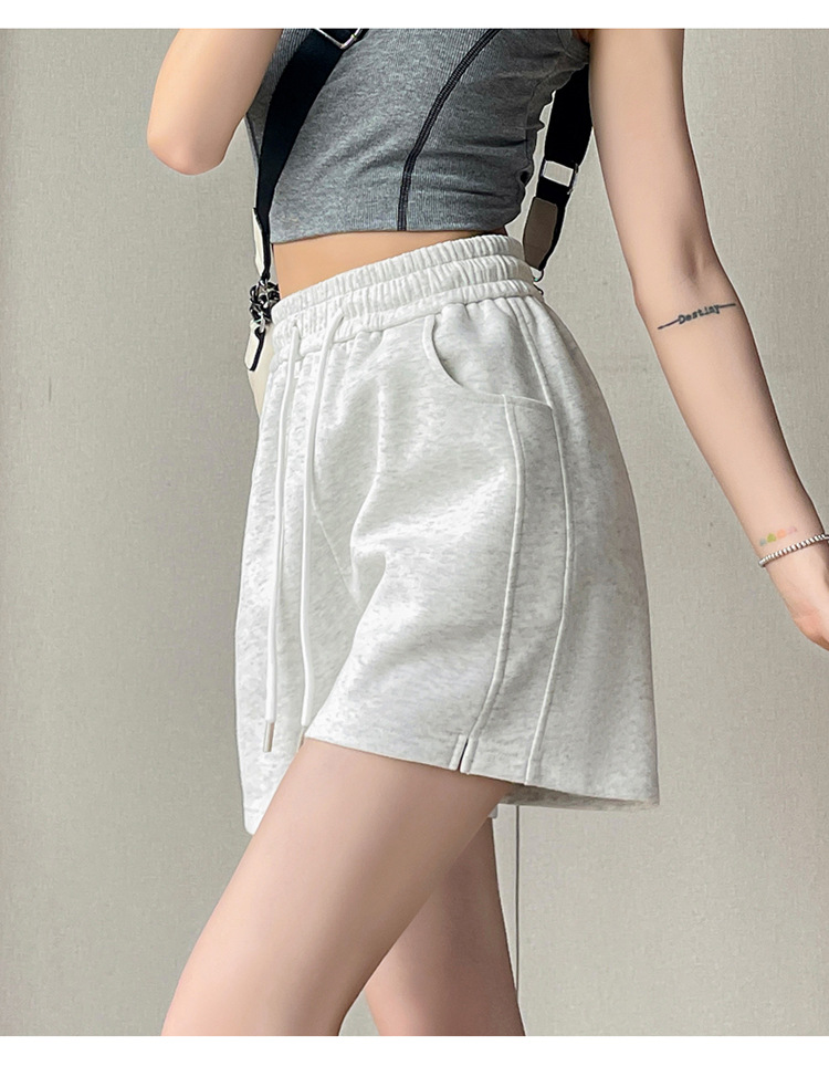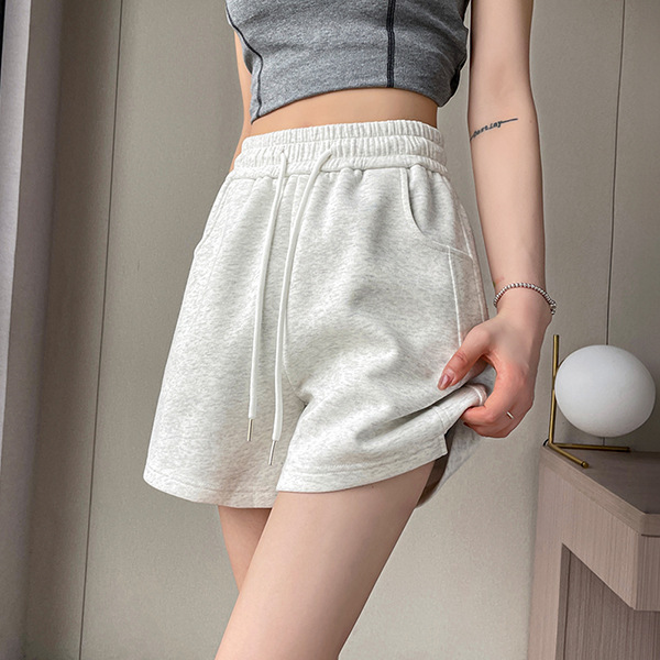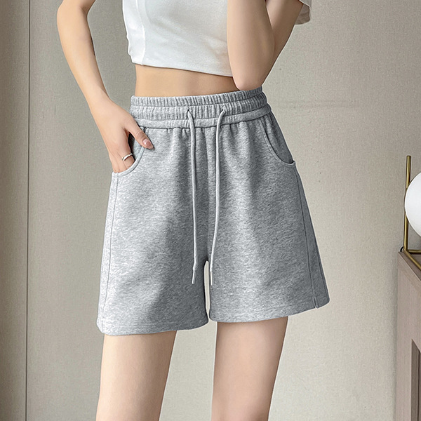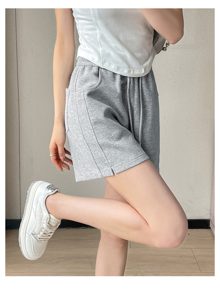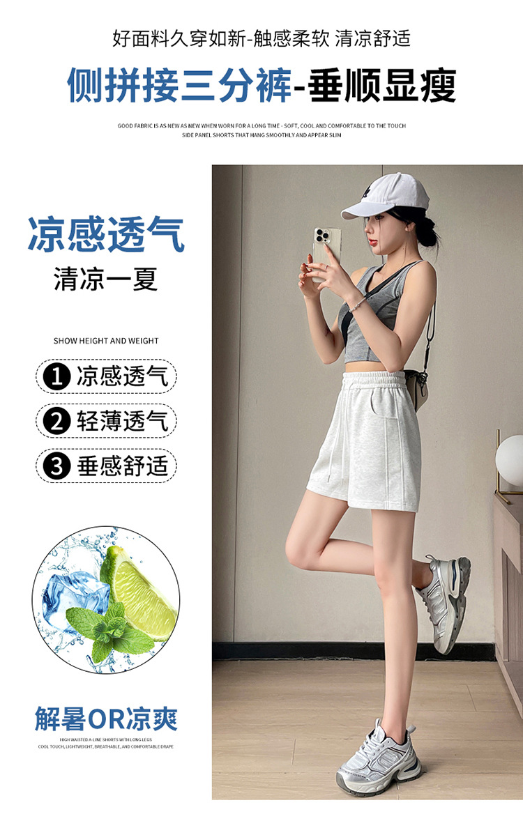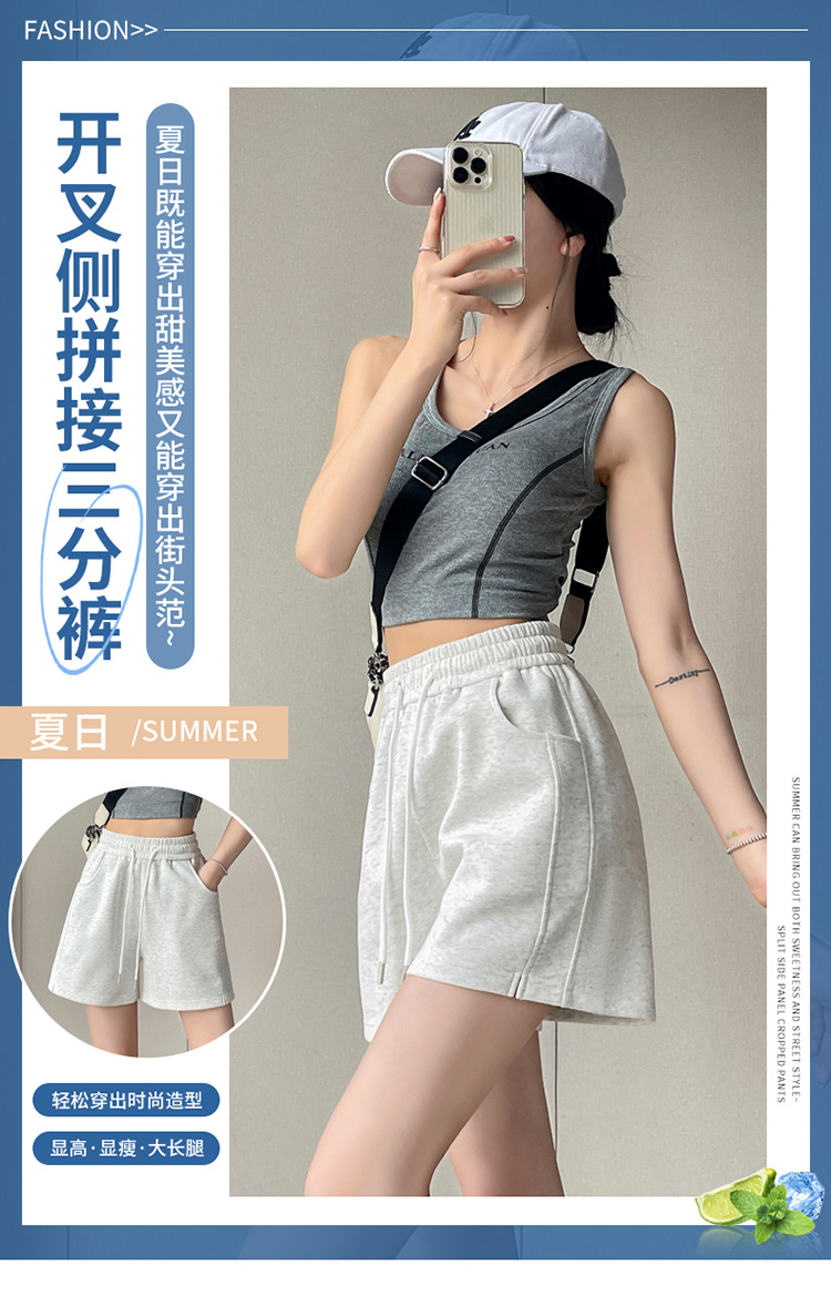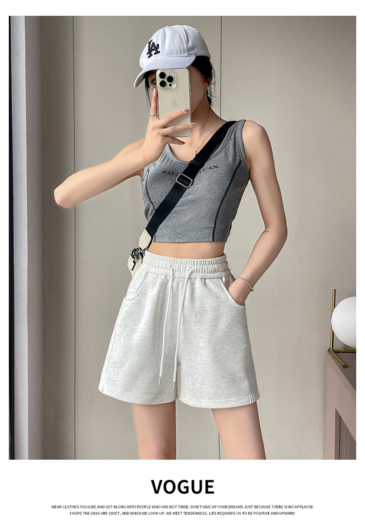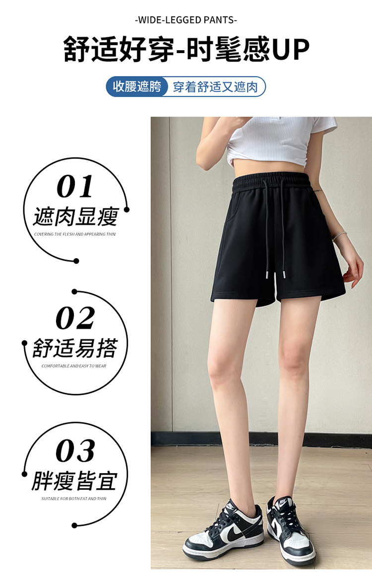 스포츠 반바지 여성 심플 스타일 여름 2025 새로운 캐주얼 코튼 루즈한 작은 슬릿 겉옷 3점 와이드 레그 팬츠스토어 가기