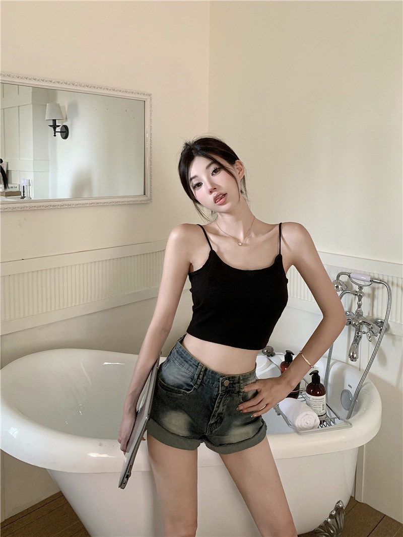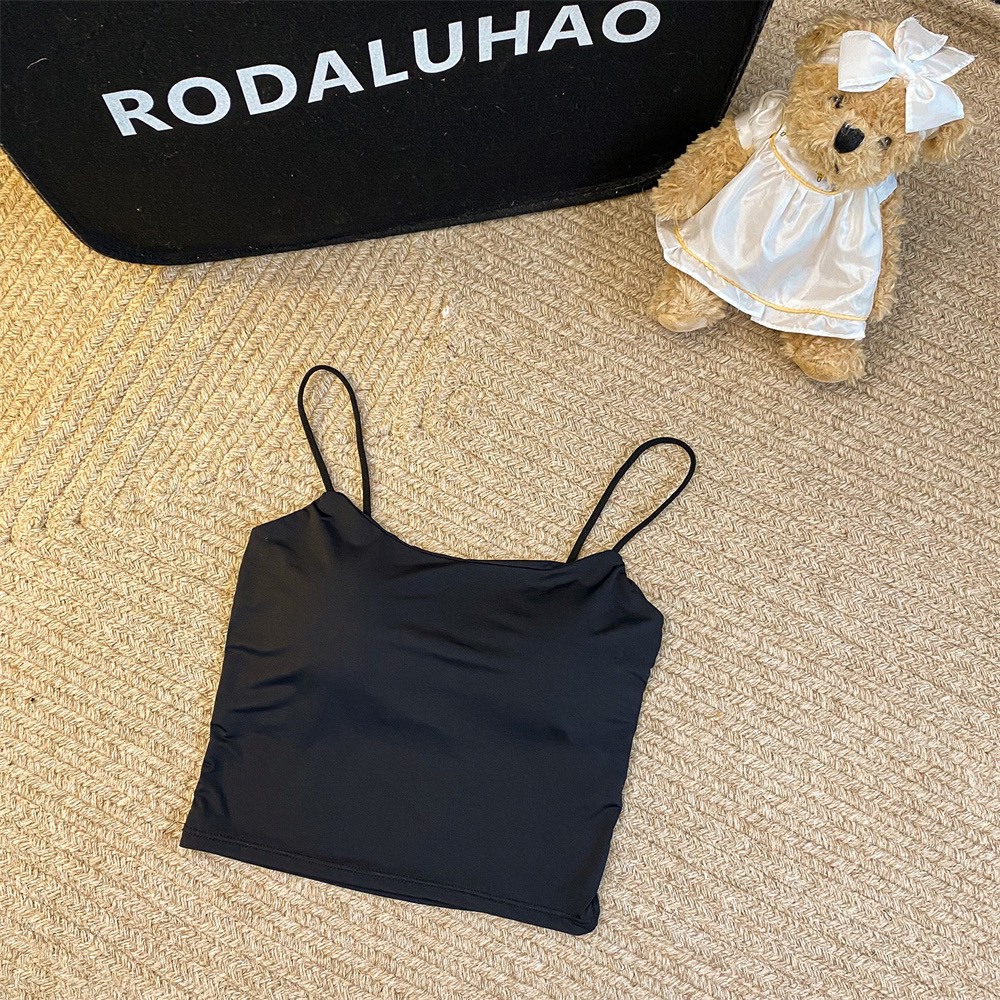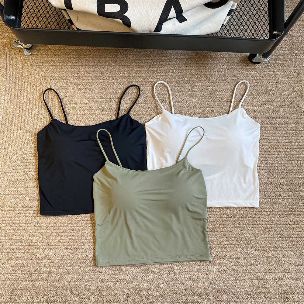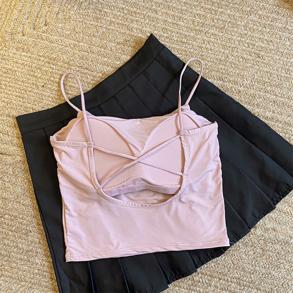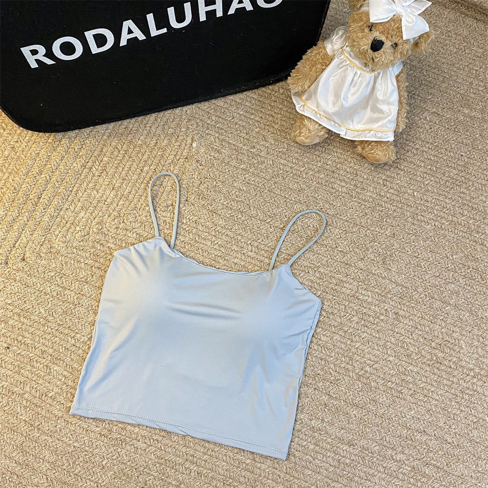 여름 아이스 실크 슬링 아름다운 다시 섹시한 뜨거운 소녀 크로스 이슬 스트랩 가슴 패드 얇은 어깨 스트랩 조끼 슬림 핏 내부 착용 외부 착용스토어 가기