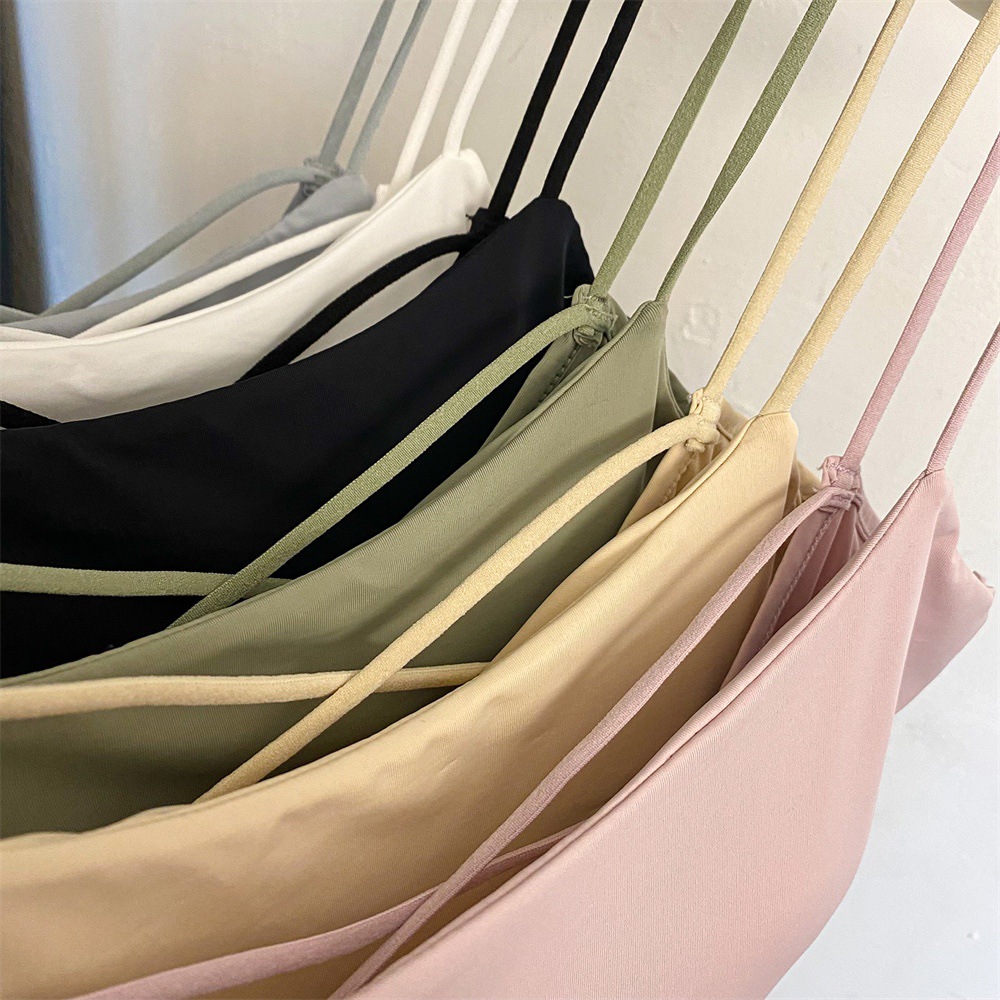 여름 아이스 실크 슬링 아름다운 다시 섹시한 뜨거운 소녀 크로스 이슬 스트랩 가슴 패드 얇은 어깨 스트랩 조끼 슬림 핏 내부 착용 외부 착용
