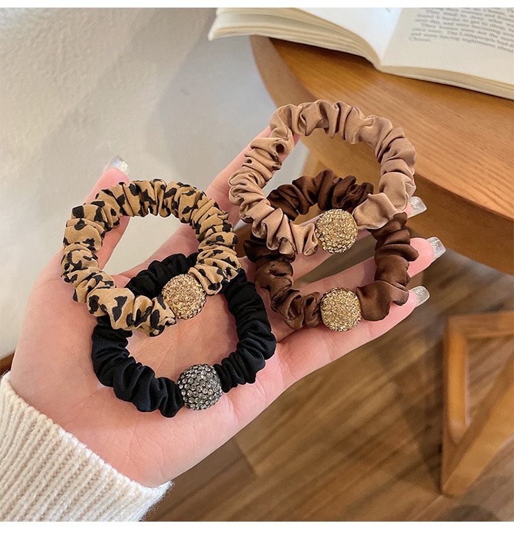 우아한 레오파드 모조 다이아몬드 헤어 링 헤어 로프 새로운 높은 감각 라운드 볼 헤드 로프 높은 탄성 헤어 액세서리 도매 액세서리 여성스토어 가기