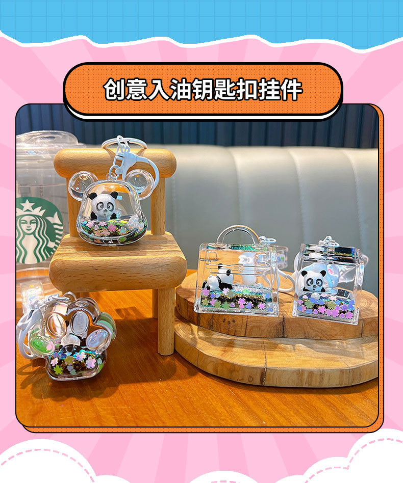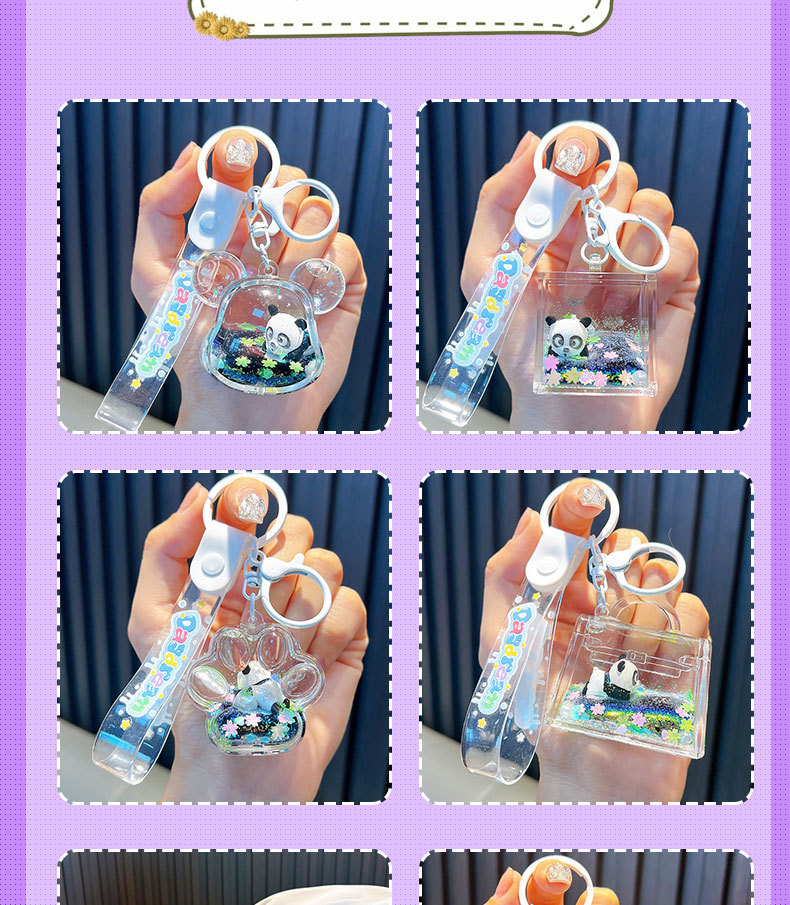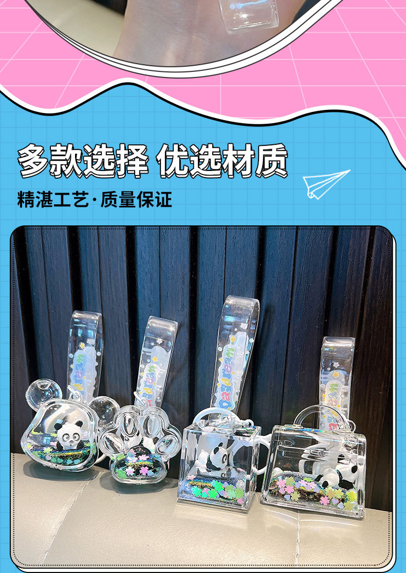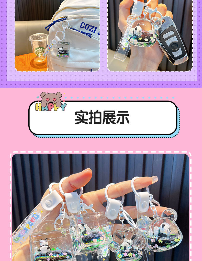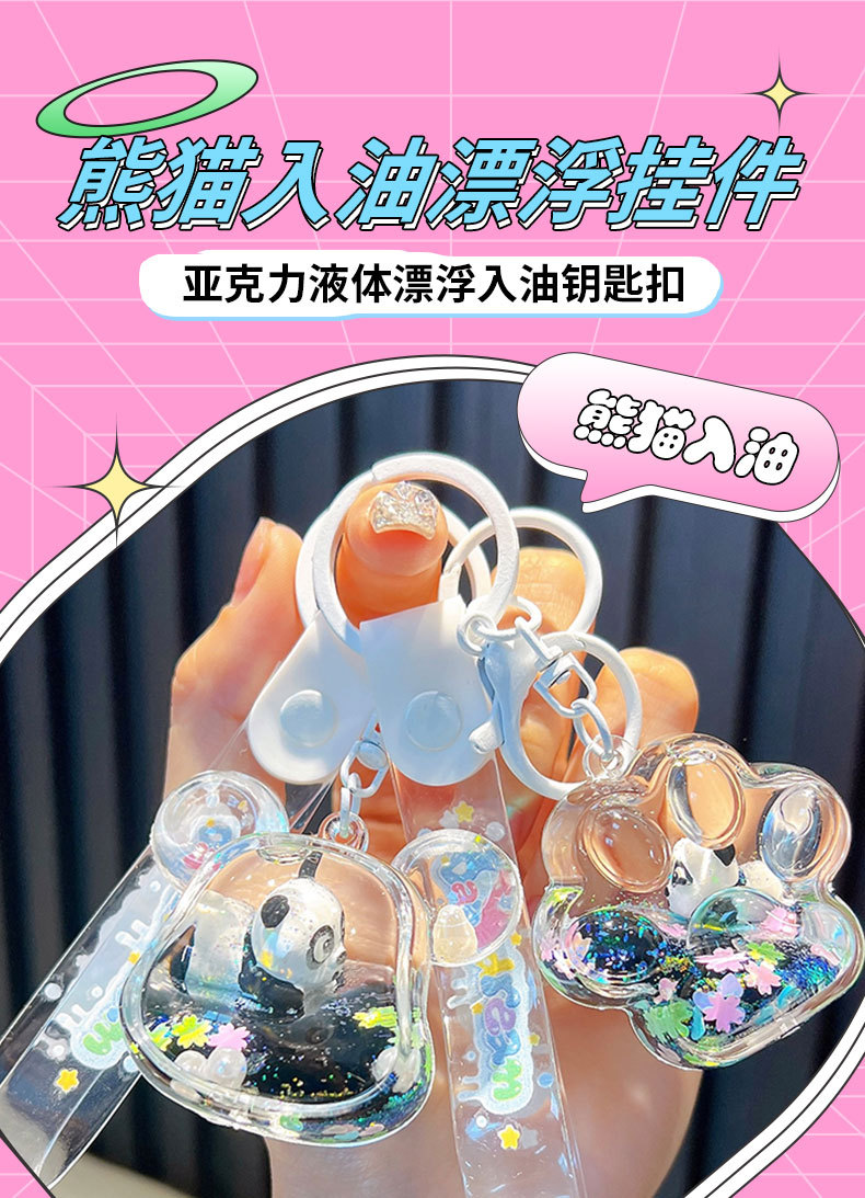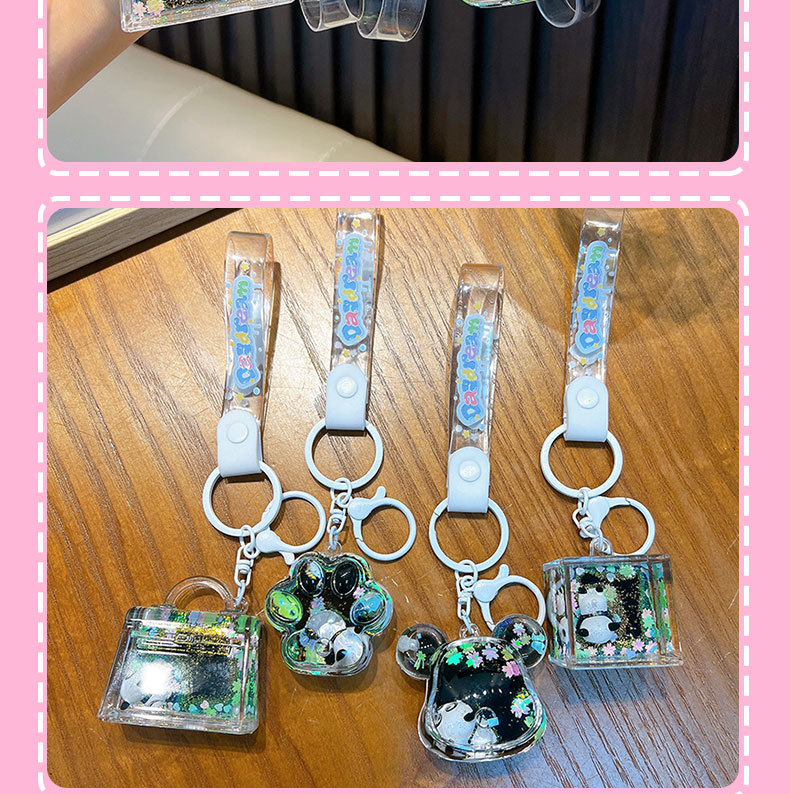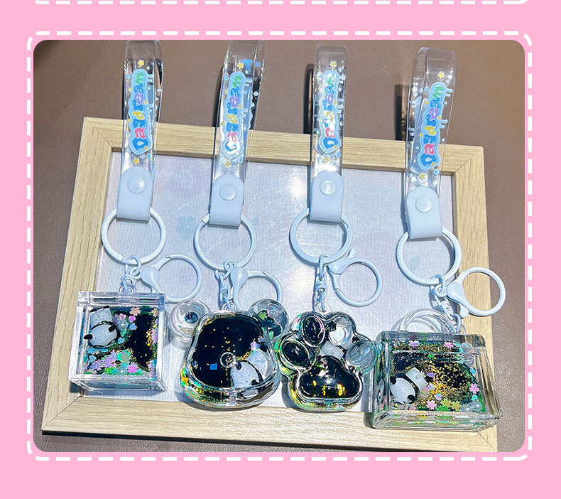 블랙 골드 오일 팬더 키 체인 퀵 샌드 병 펜던트 학생 졸업 선물 자동차 키 체인 작은 선물 도매스토어 가기
