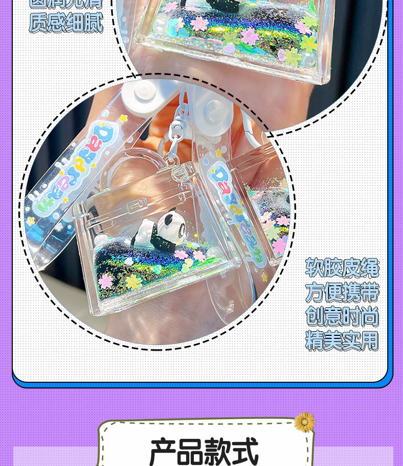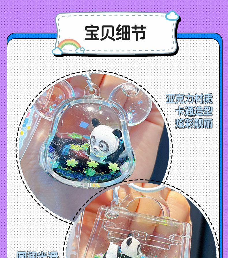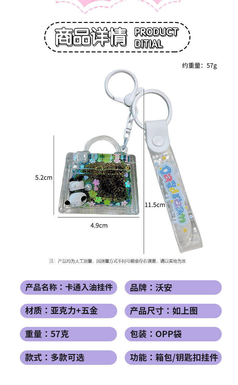 블랙 골드 오일 팬더 키 체인 퀵 샌드 병 펜던트 학생 졸업 선물 자동차 키 체인 작은 선물 도매