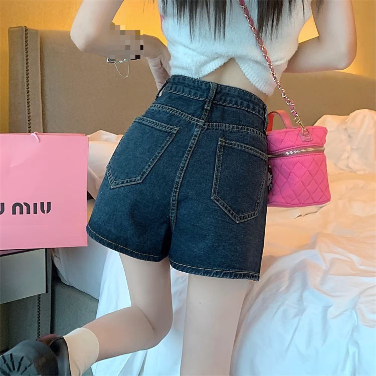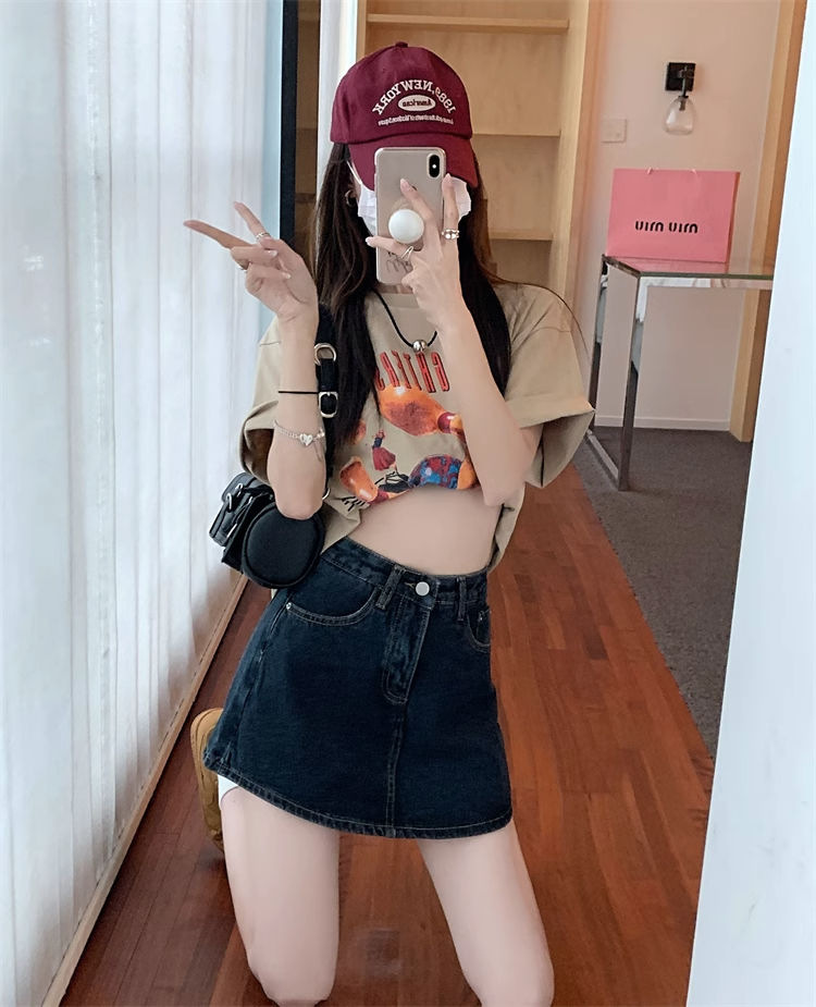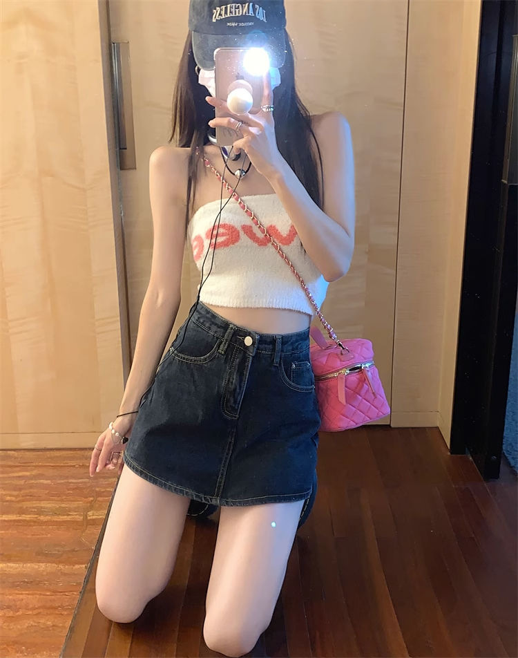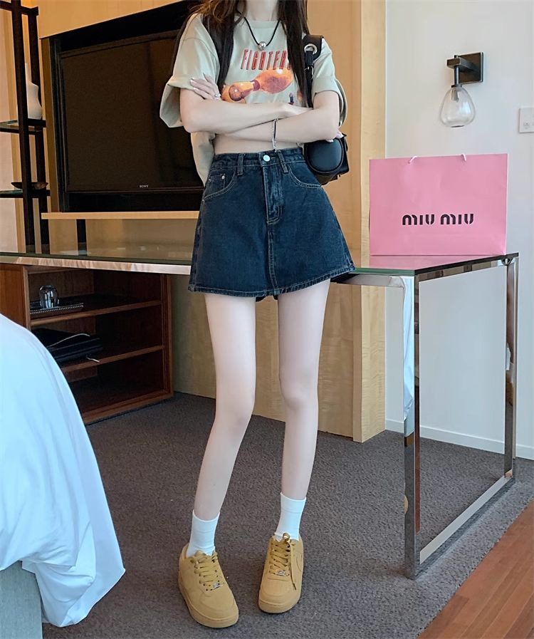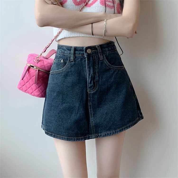 2024 년 여름 다크 블루 작은 치마 여자 새로운 높은 허리 슬리밍 A 라인 엉덩이 올스타 데님 스커트스토어 가기