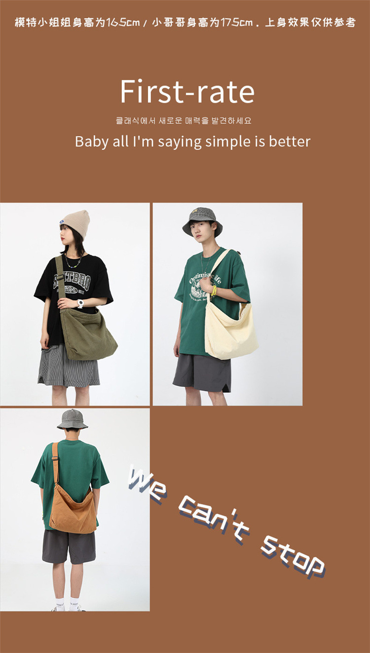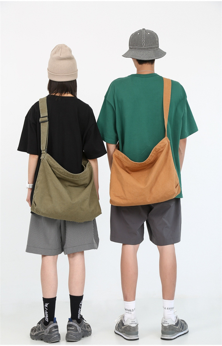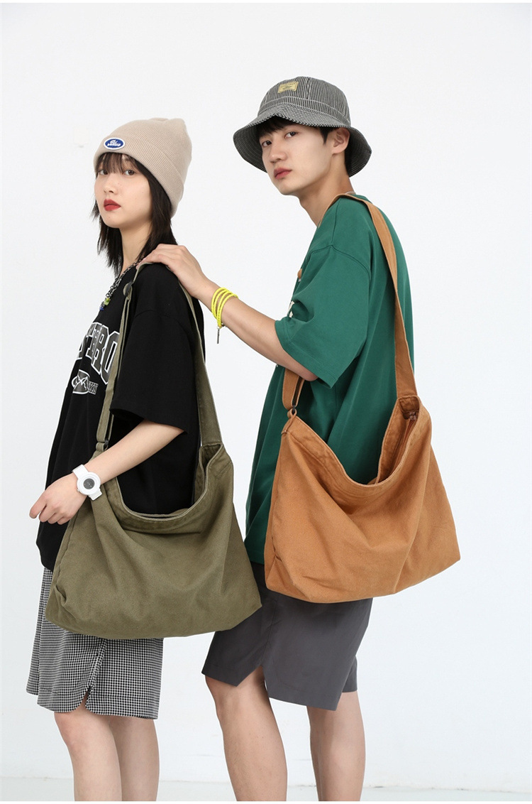 일본과 한국 스타일 간단한 게으른 스타일 예술적 세척 캔버스 가방 대용량 크로스 바디 백 학생 어깨 가방 캐주얼 쇼핑백