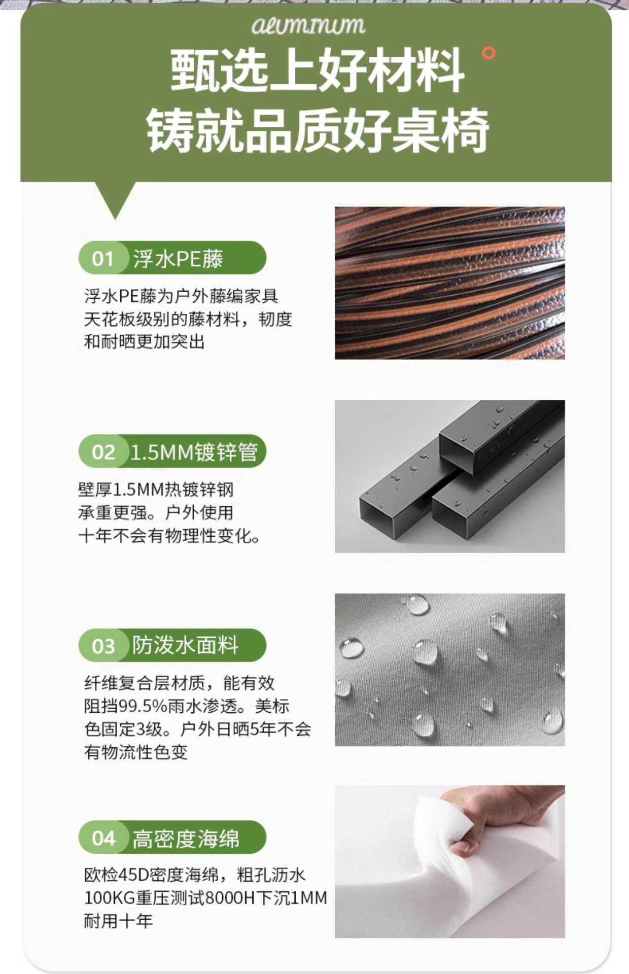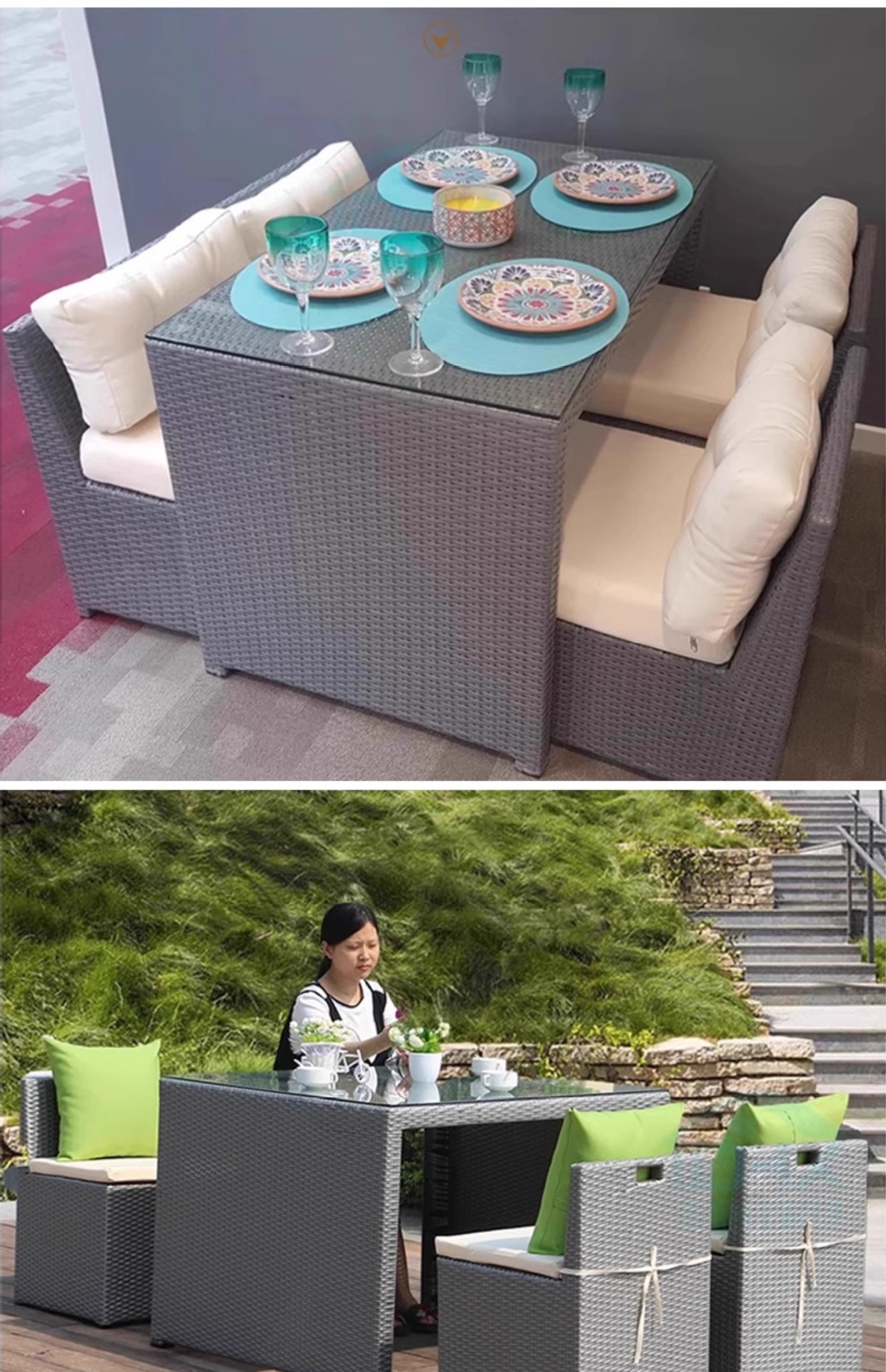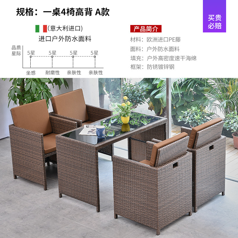 야외 안뜰 테이블 및 의자 야외 야외 발코니 등나무 테이블 및 의자 조합 테라스 식사 테이블 및 의자 레저 외부 등나무 의자스토어 가기