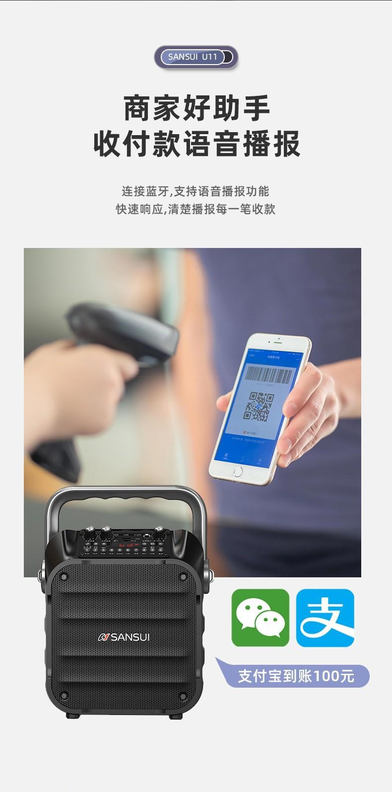 SANSUI/조경 무선 휴대용 U11 블루투스 스퀘어 댄스 야외 노래 소리 큰 스피커 라디오스토어 가기
