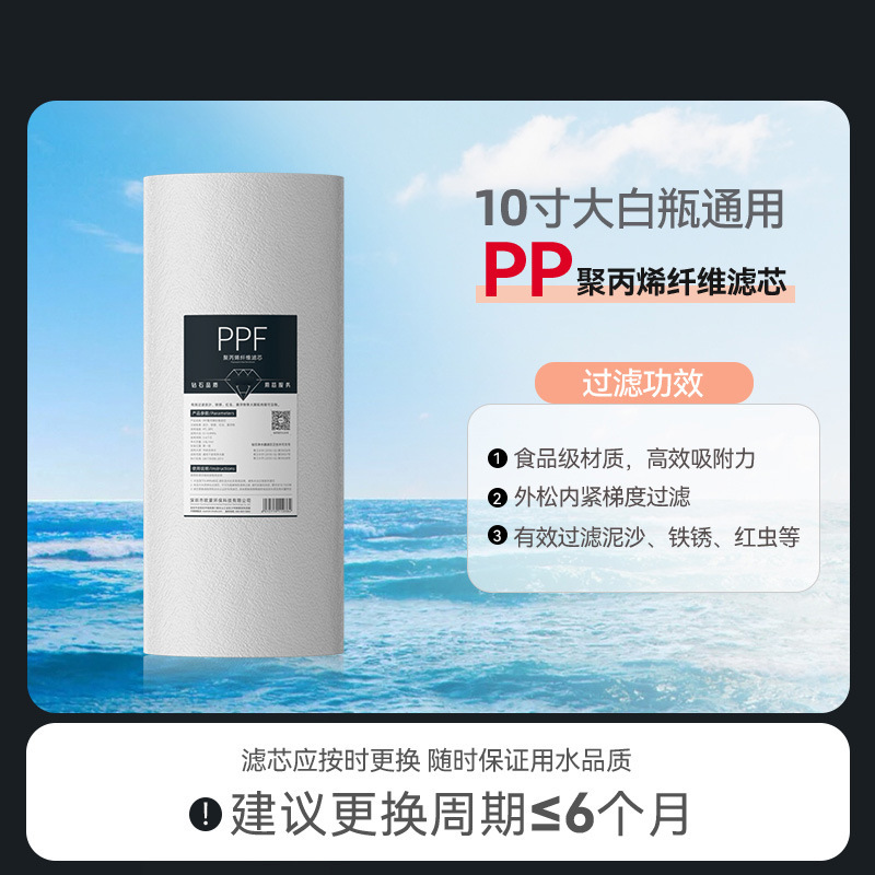 큰 지방 병 보편적 인 필터 요소 10 인치 전면 특수 PP 면 활성탄 스케일 억제 전체 집 수돗물 필터 액세서리