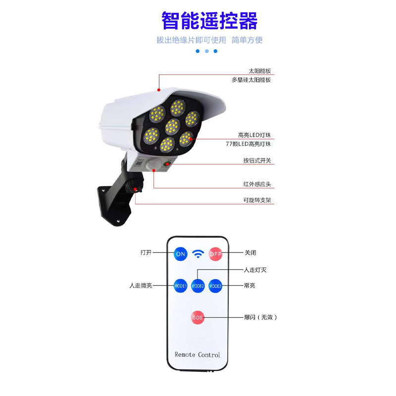 국경 간 태양 광 조명 야외 정원 조명 지능형 인간 유도 조명 시뮬레이션 감시 카메라 가로등스토어 가기
