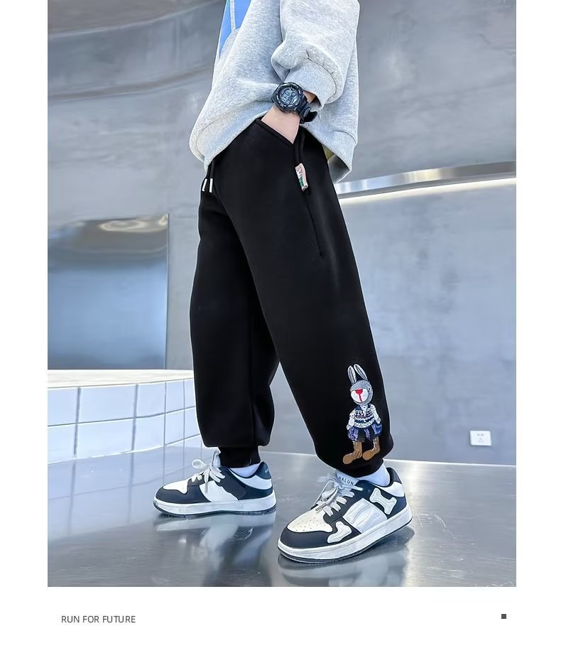 어린이 봄 토끼 스포츠 운동복 2024 새로운 도착 서양식 봄 원피스 소년의 봄과 가을 잘 생긴 느슨한 유행 바지스토어 가기