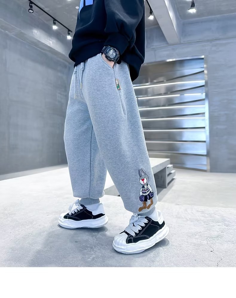 어린이 봄 토끼 스포츠 운동복 2024 새로운 도착 서양식 봄 원피스 소년의 봄과 가을 잘 생긴 느슨한 유행 바지